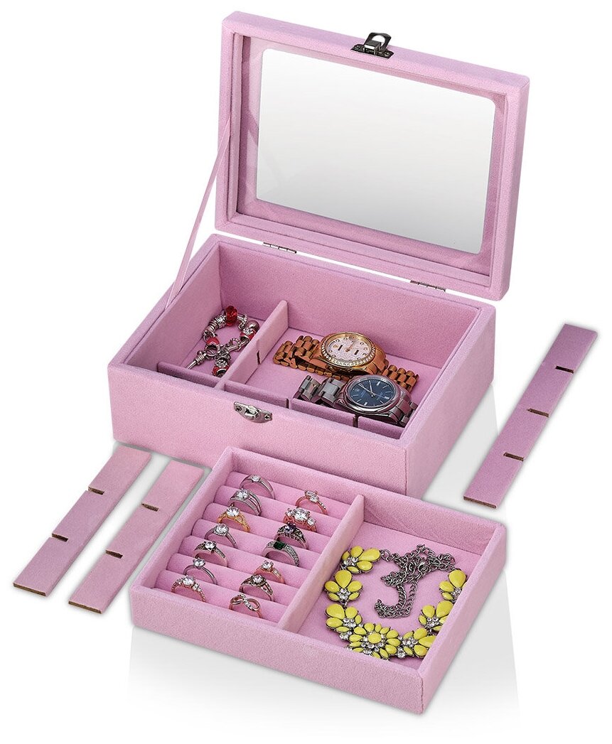Купить Шкатулка с отделениями для украшений и колец / Органайзер для бижутерии / Держатель под украшения S1521-Pink