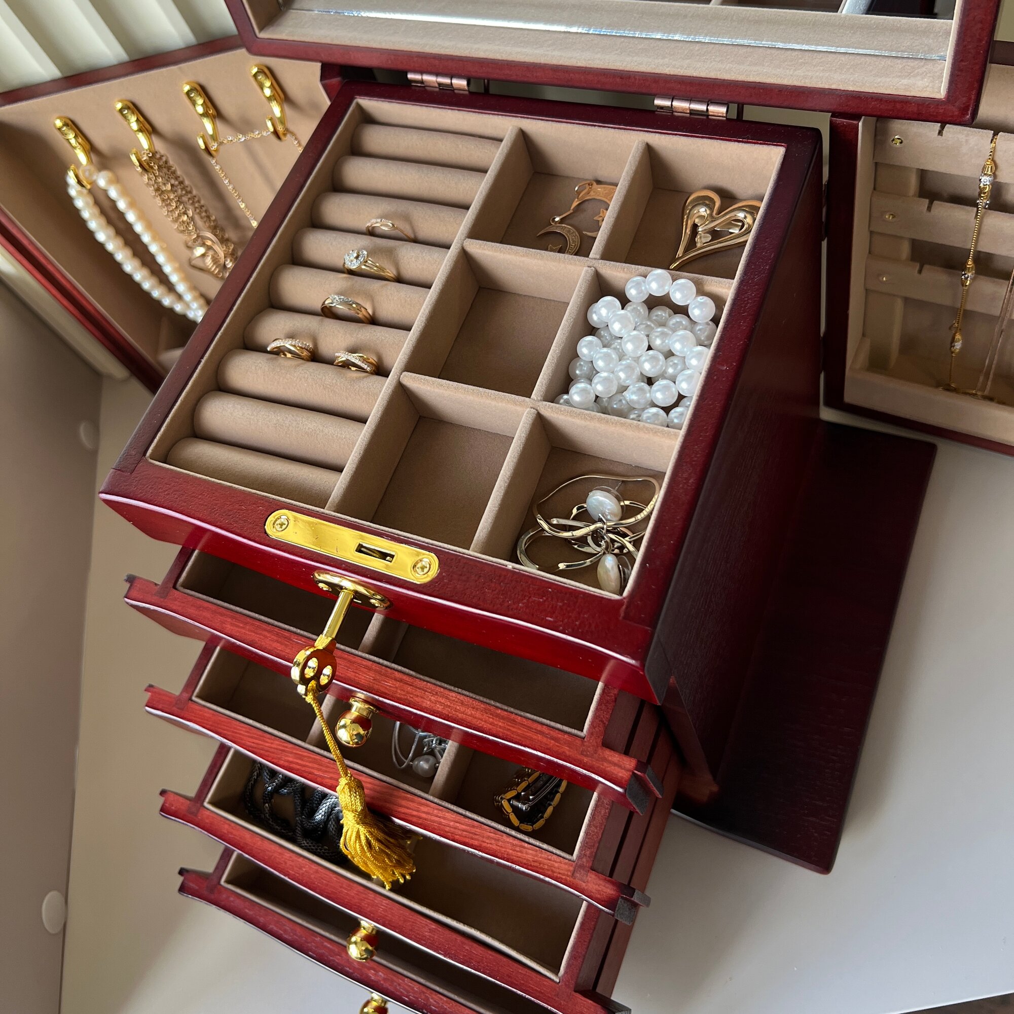 Купить Шкатулка для украшений деревянная с зеркалом и замком, цвет красное дерево