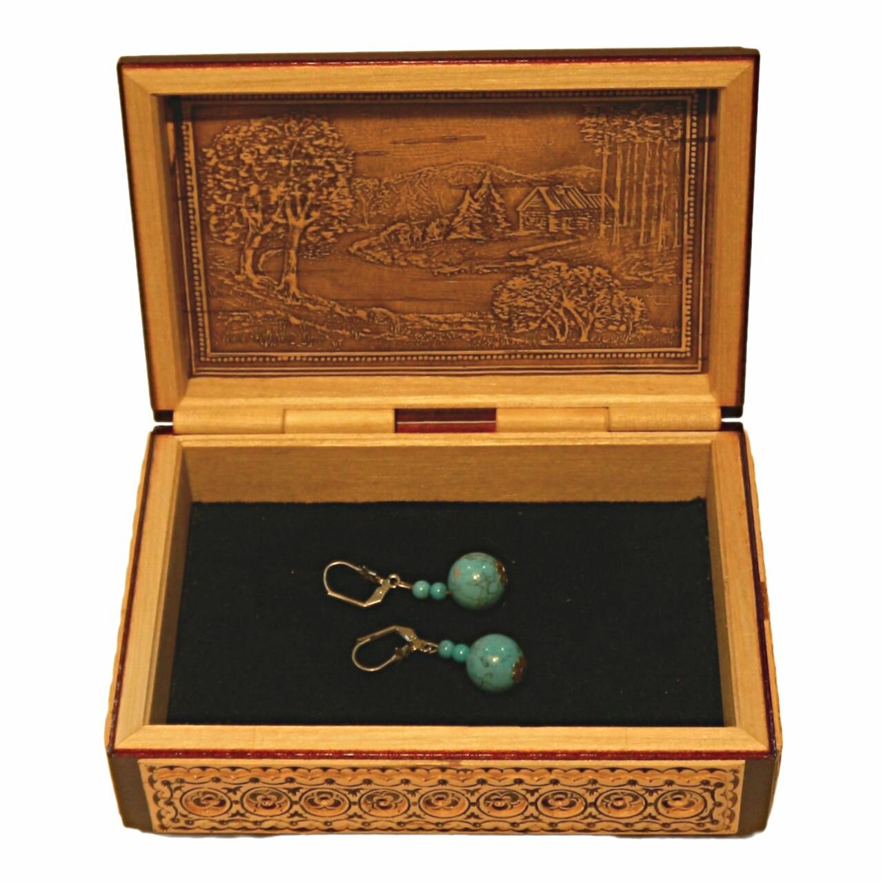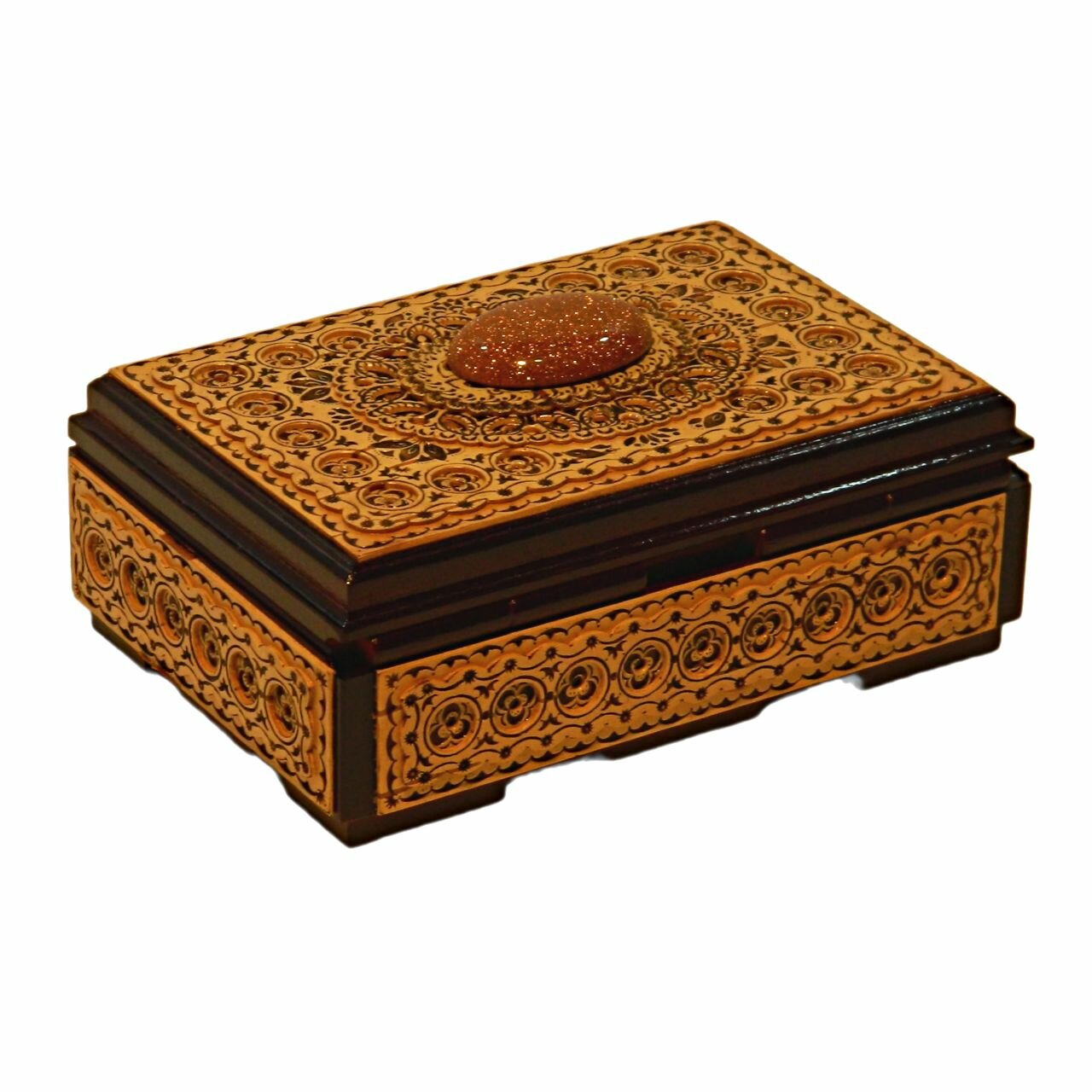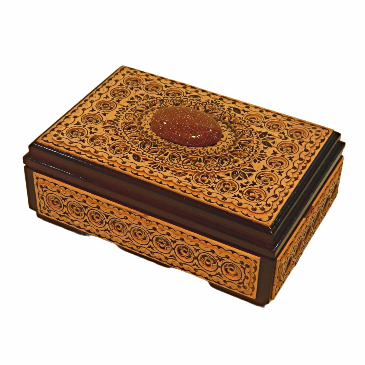 Шкатулка для украшений деревянная с декором из бересты и авантюрином интересное: