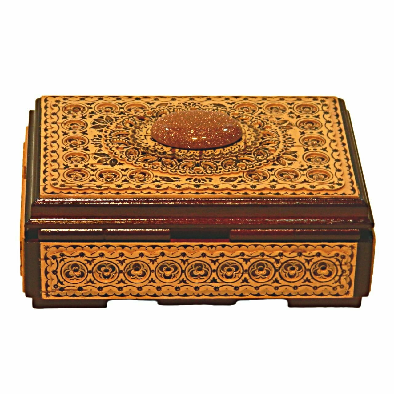 Купить Шкатулка для украшений деревянная с декором из бересты и авантюрином