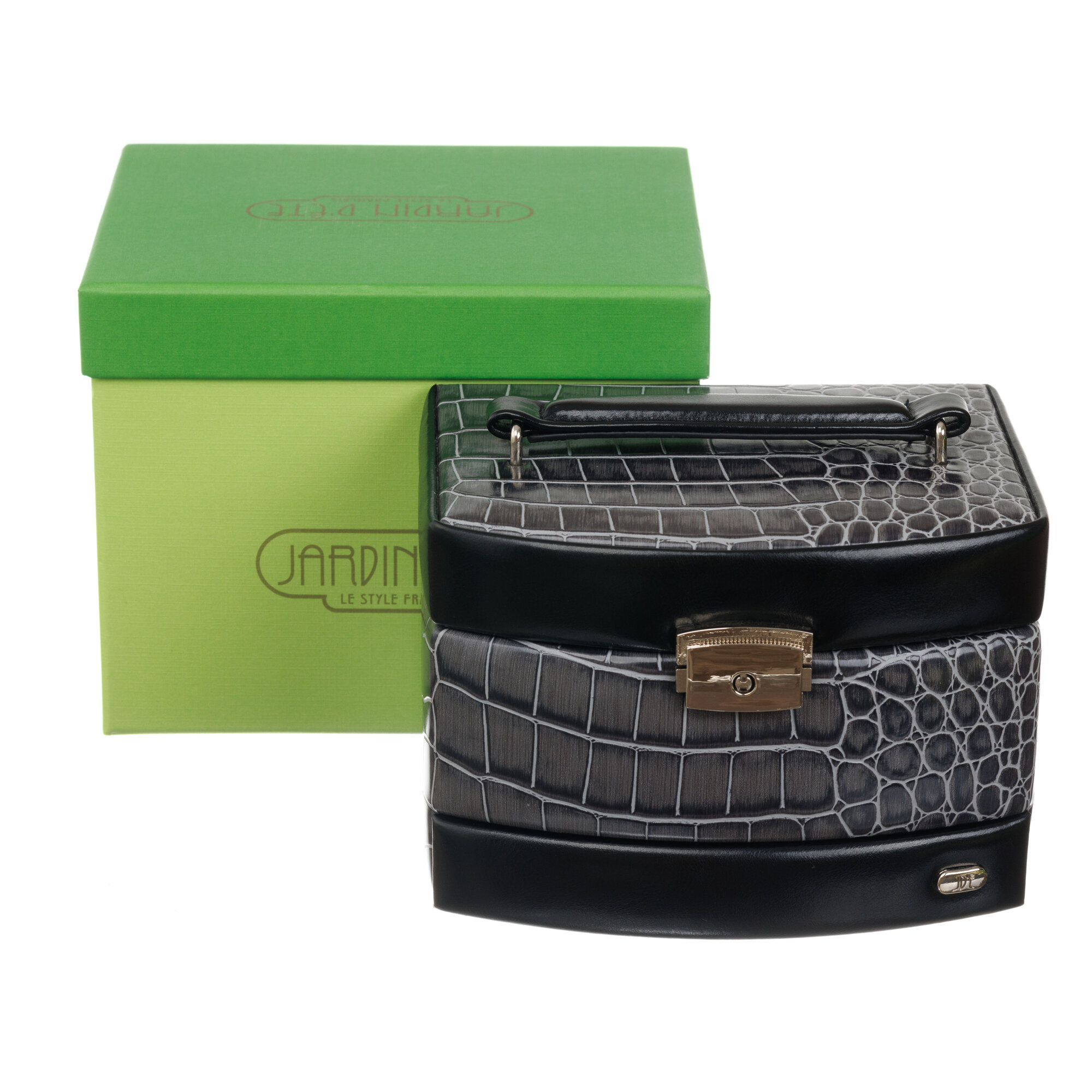 Купить Шкатулка для украшений Jardin D'Ete, 15.8 х 13 х 11.5 см, искусственная кожа, цвет антрацит, "рептилия" (P6031)