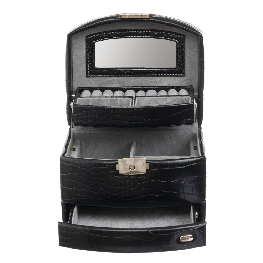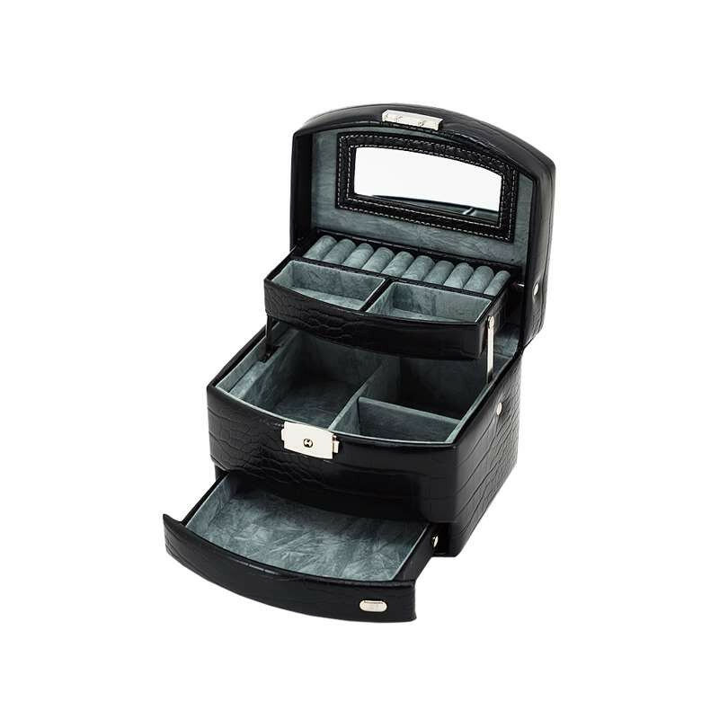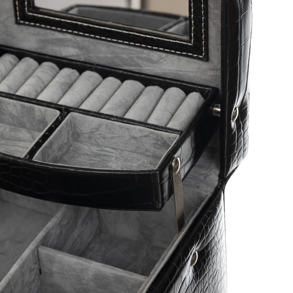 Шкатулка для украшений Jardin D'Ete, 24.8 х 16 х 12,5 см, искусственная кожа, цвет антрацит, "рептилия" (P6032)