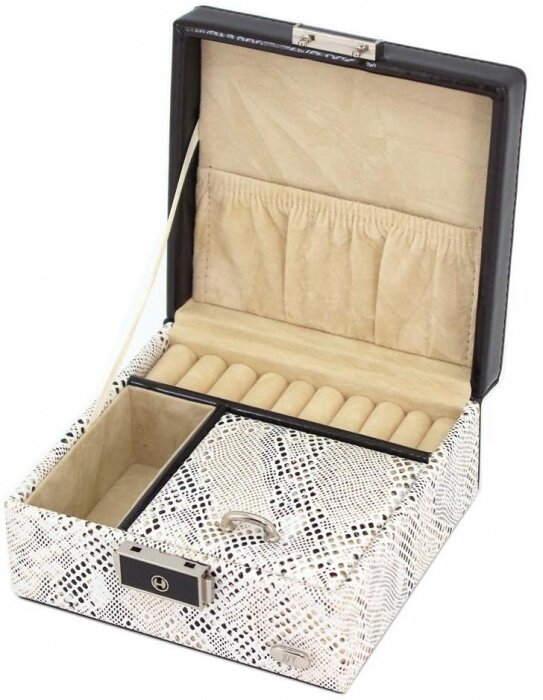Шкатулка для украшений Jardin D'Ete, 18.3 х 12.3 х 8.6 см, искусственная кожа, цвет бежево-золотистый, "змея" (P6292)