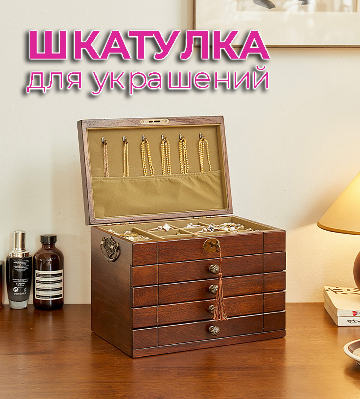 Шкатулка для украшений, цвет орех