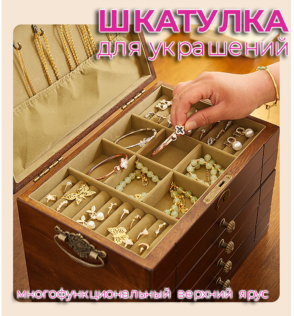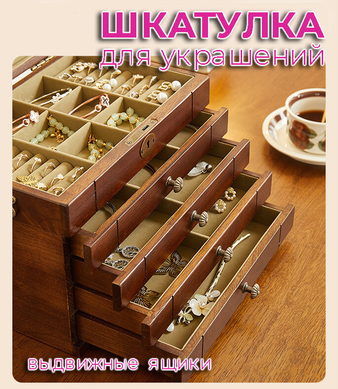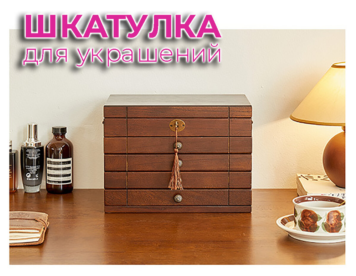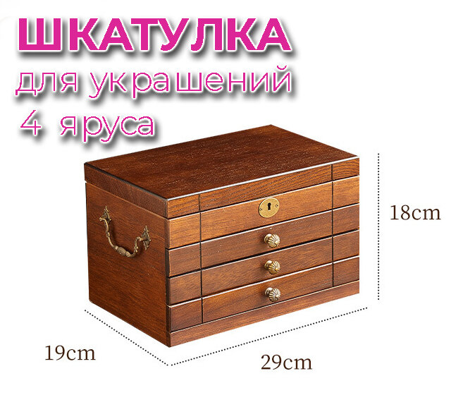 Шкатулка для украшений, 3 выдвижных ящика, цвет орех интересное: