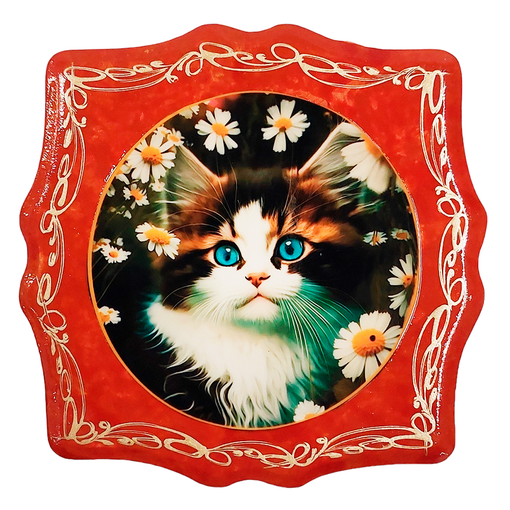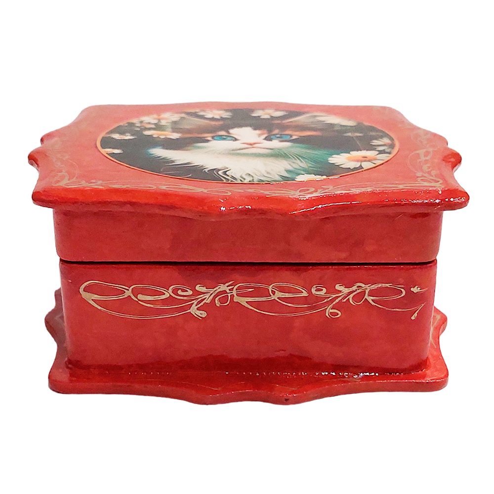 Купить Деревянная квадратная шкатулка, резная для украшений "Котёнок в ромашках"