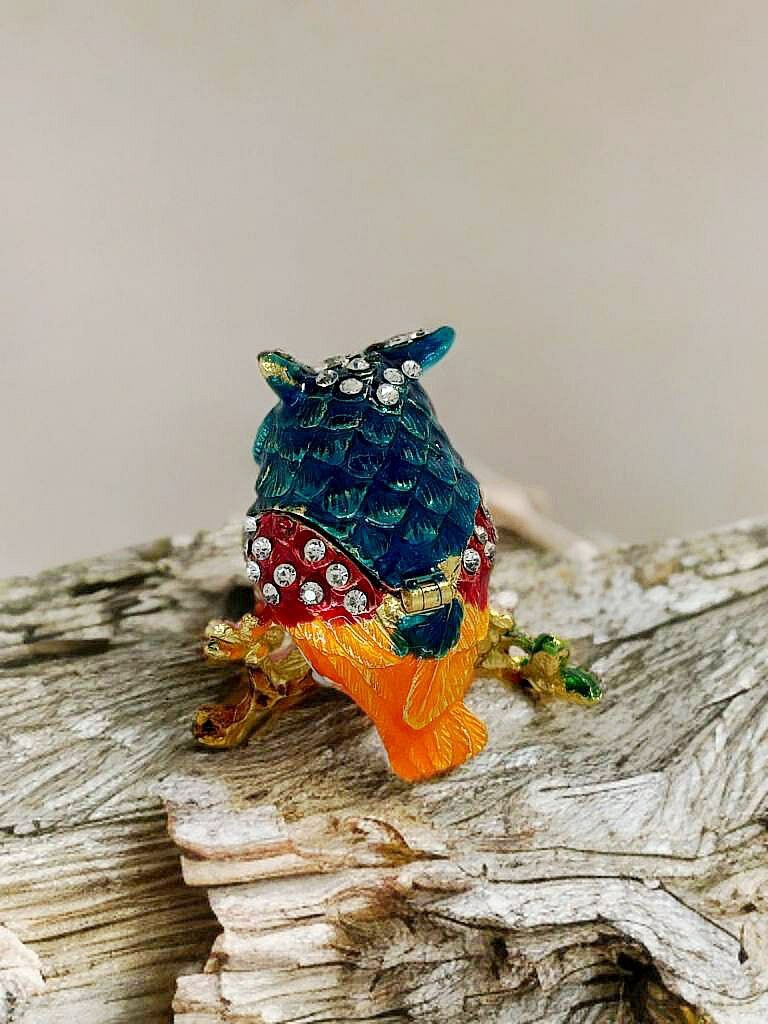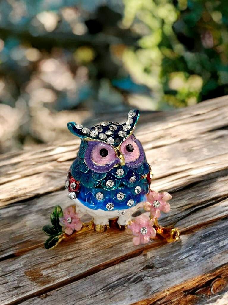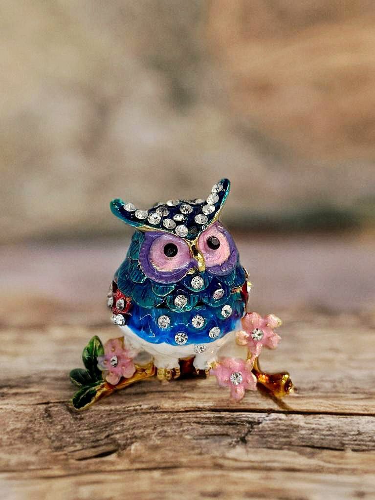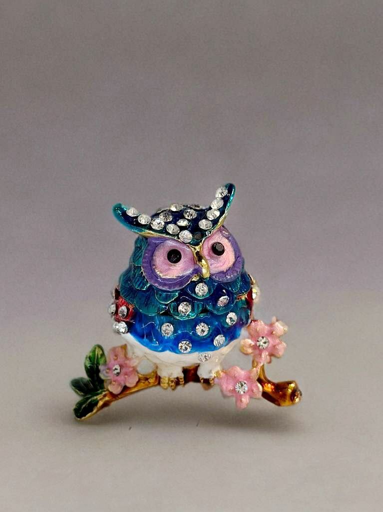 Купить Шкатулка со стразами Swarovski для ювелирных украшений Сова на цветущей ветке 4х4,5 см.