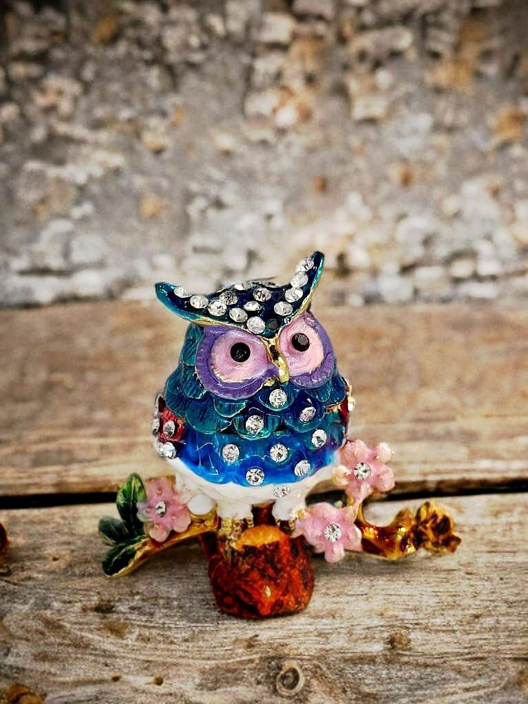 Шкатулка со стразами Swarovski для ювелирных украшений Сова на цветущей ветке 4х4,5 см. интересное: