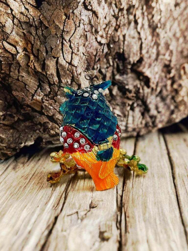 Шкатулка со стразами Swarovski для ювелирных украшений Сова 3,5х3 см.