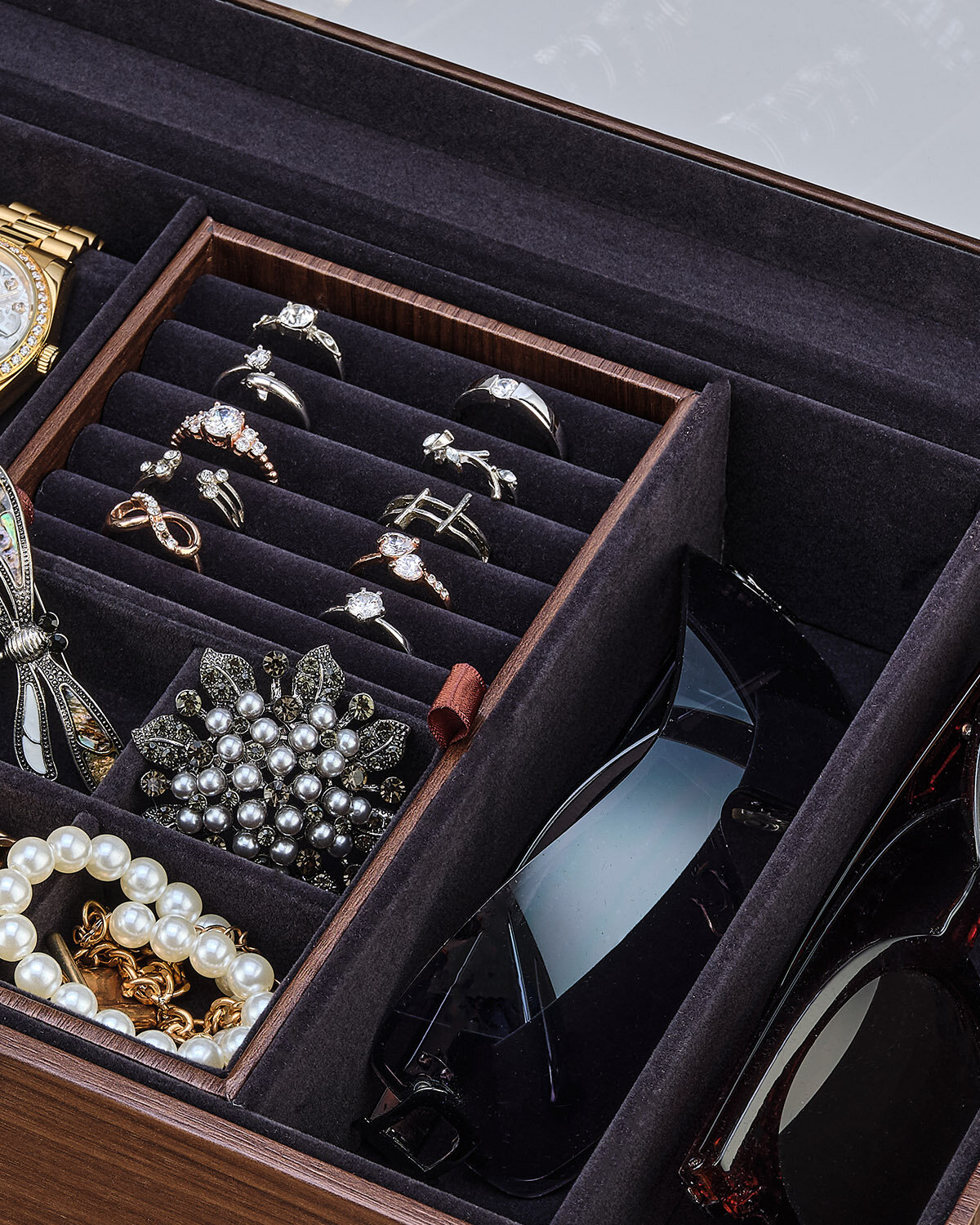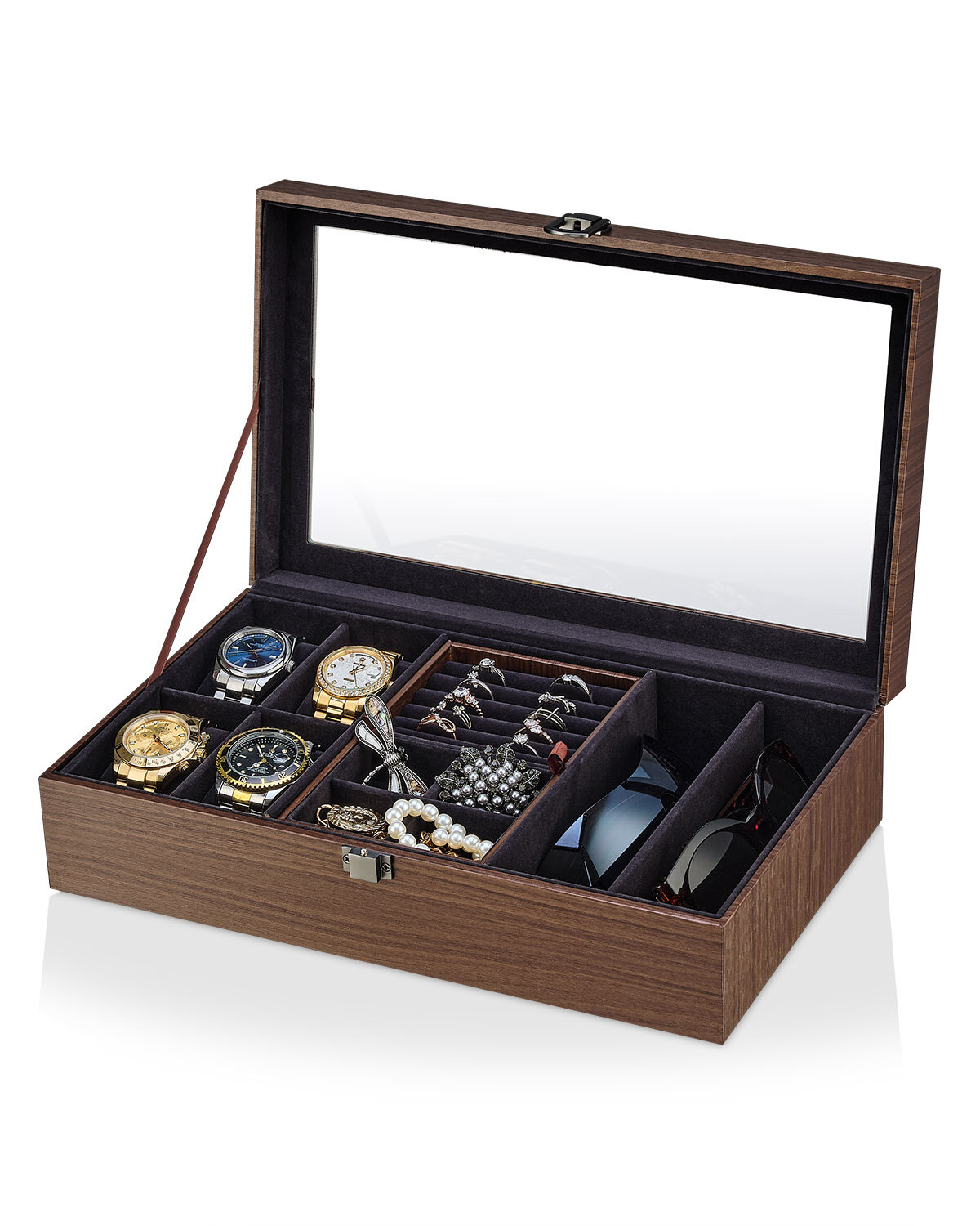 Шкатулка органайзер для хранения наручных часов, ювелирных украшений и очков универсальная Kalahari-4+2