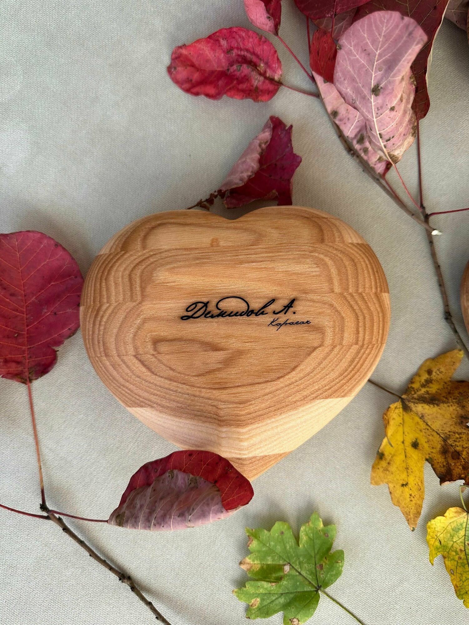 Шкатулка в форме сердца ясень 16,7*15*4 см
