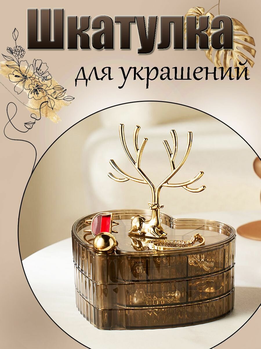 Шкатулка для украшений Сердце Swan Dream (Коричневое/золото) интересное: