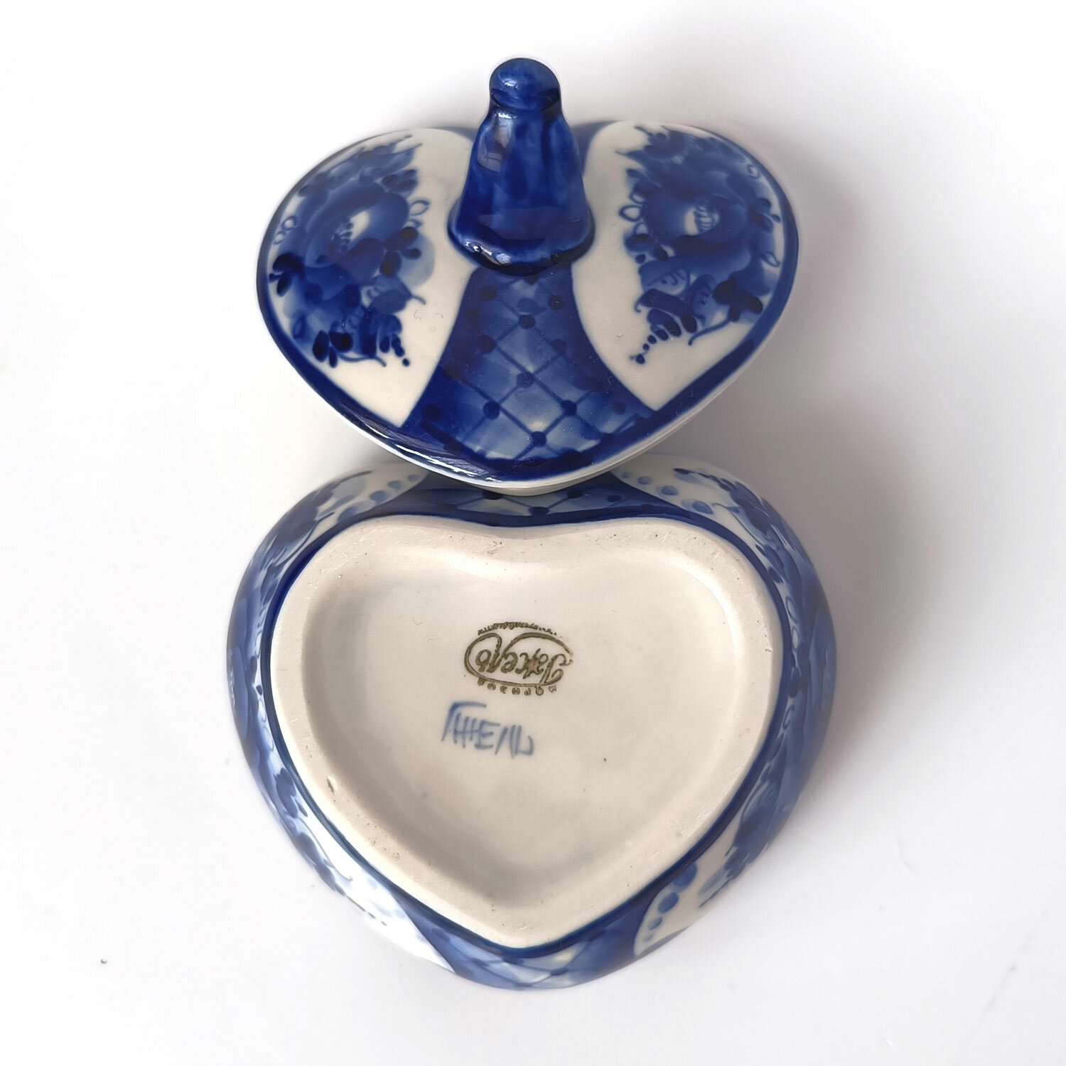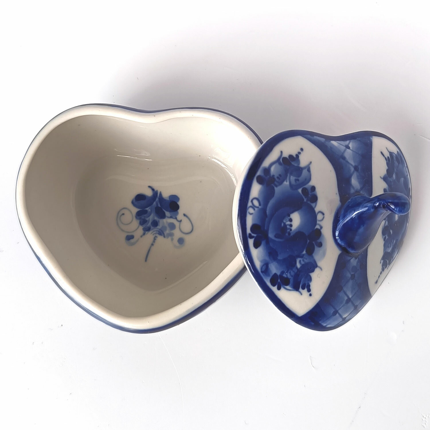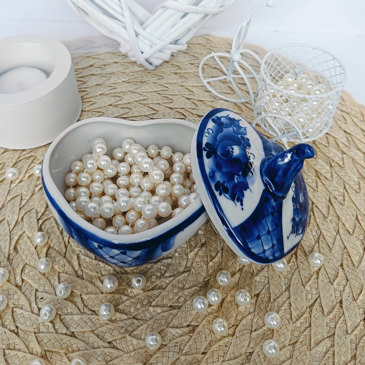 Шкатулка для украшений "Сердце", длина 10 см. Гжель, ручная работа интересное: