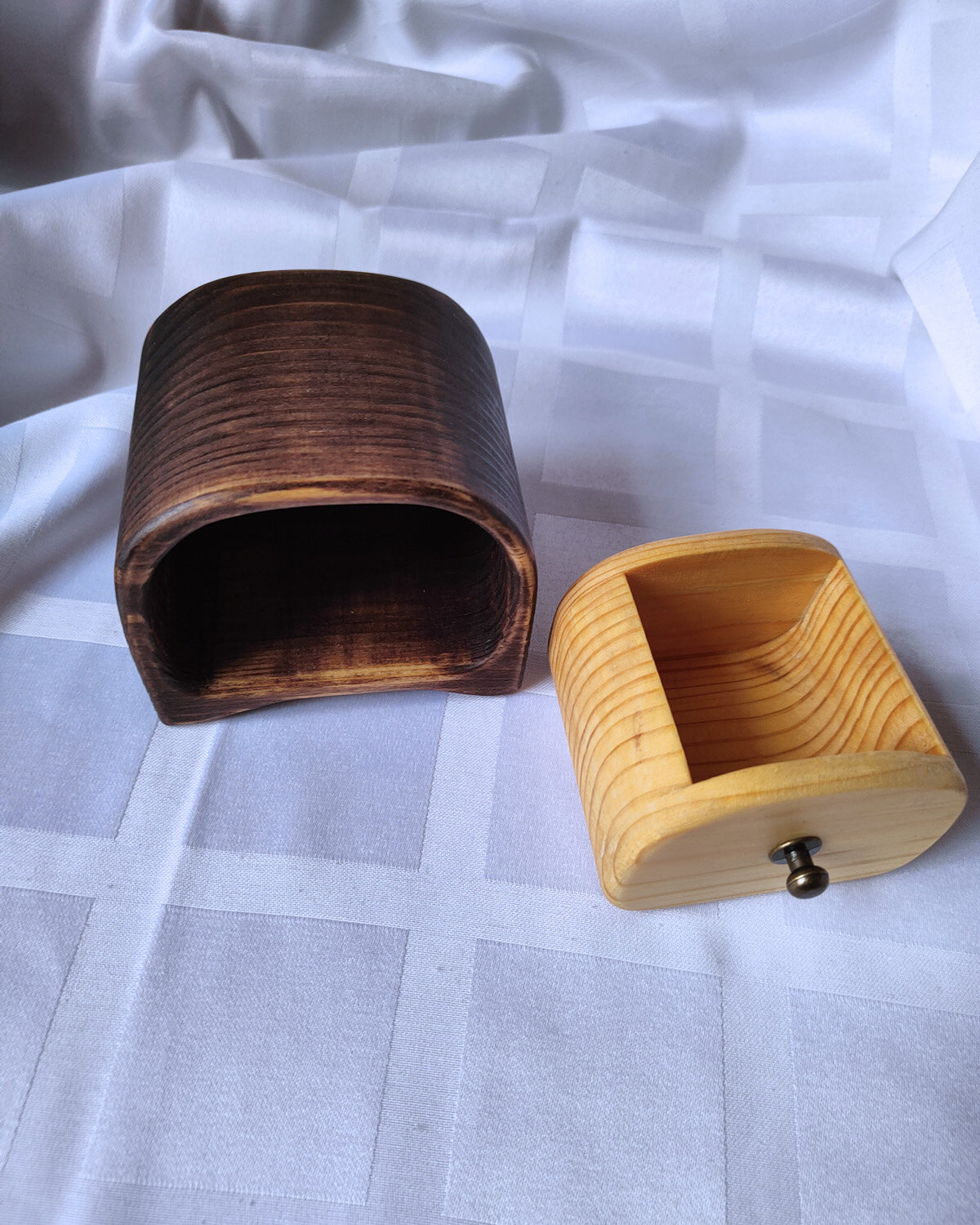 Шкатулка для украшений деревянная Комодик круглый Bandsaw box цвет шоколад