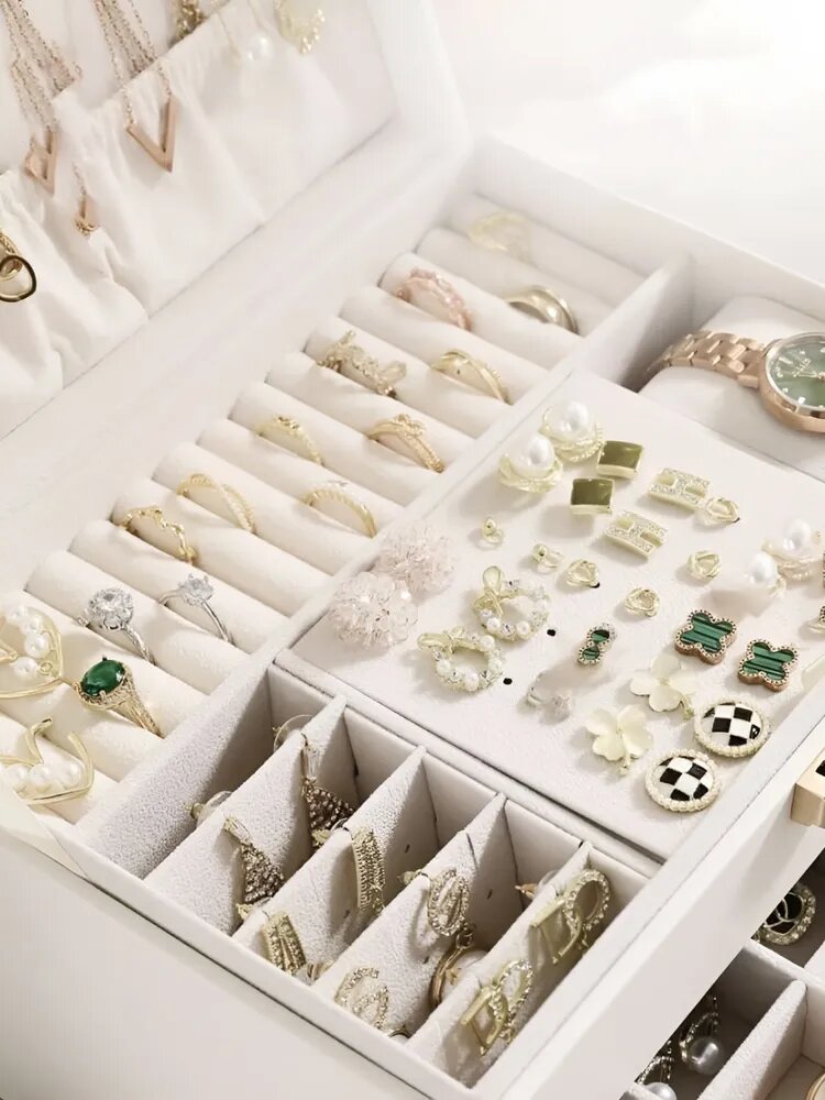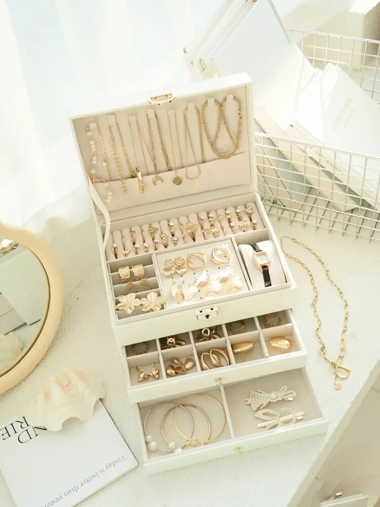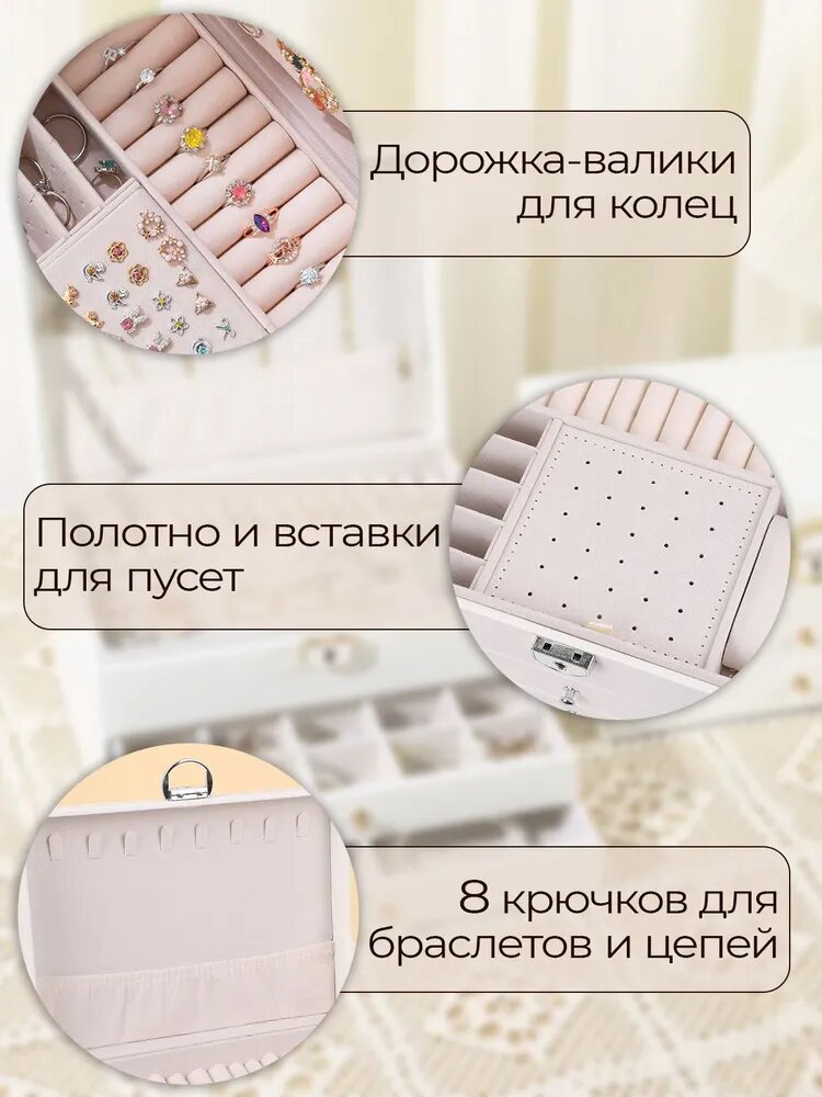 Шкатулка для украшений/шкатулка комод для украшений/Шкатулка с замком 3 яруса/шкатулка белая/органайзер для украшений интересное: