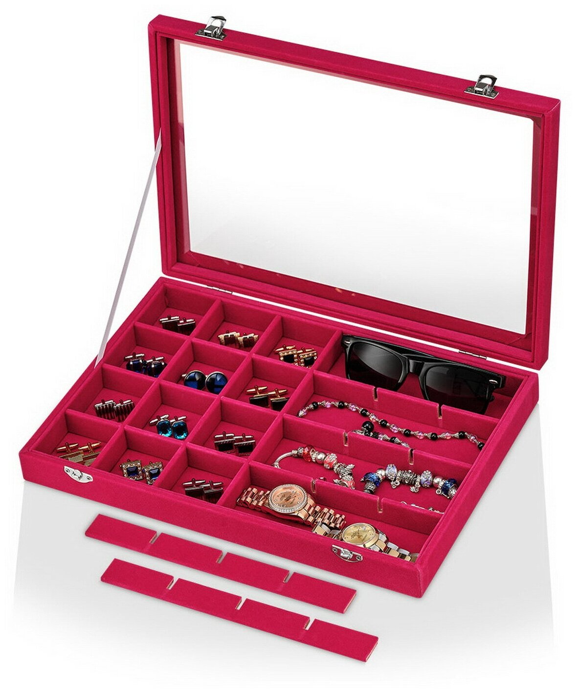 Шкатулка кейс для украшений и бижутерии большая / Органайзер для хранения / Подставка прозрачная 35х24х5 см A212-Pink