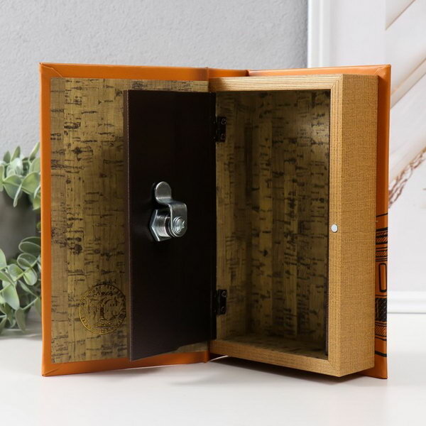 Шкатулка книга-сейф «Компас», дерево и искусственная кожа, с замком, 21×13×5 см