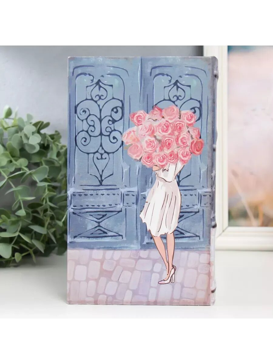 Купить Сейф-книга дерево кожзам "Девушка с букетом" 21х13х5 см