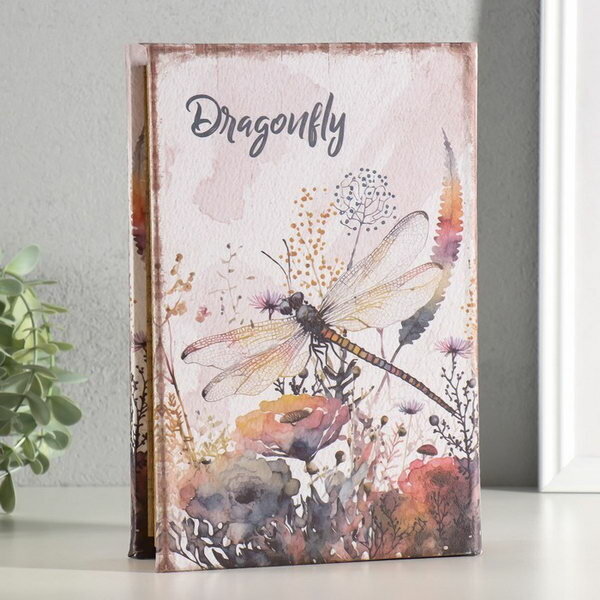 СохранитьШкатулка книга-сейф "Стрекоза и цветы", дерево, искусственная кожа, зеркало, 24x16x5 см интересное: