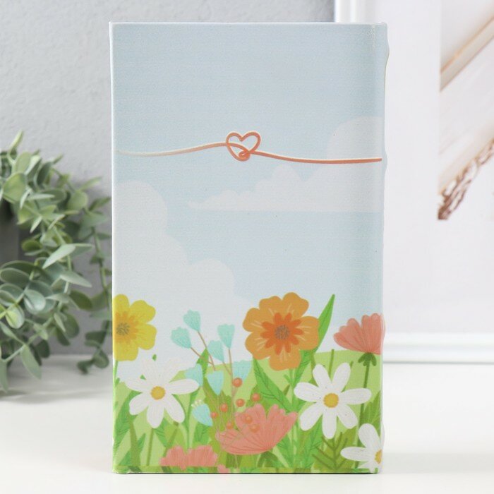 Шкатулка книга-сейф Ромашки в вазе , дерево и искусственная кожа, с замком, 21 13 5 см