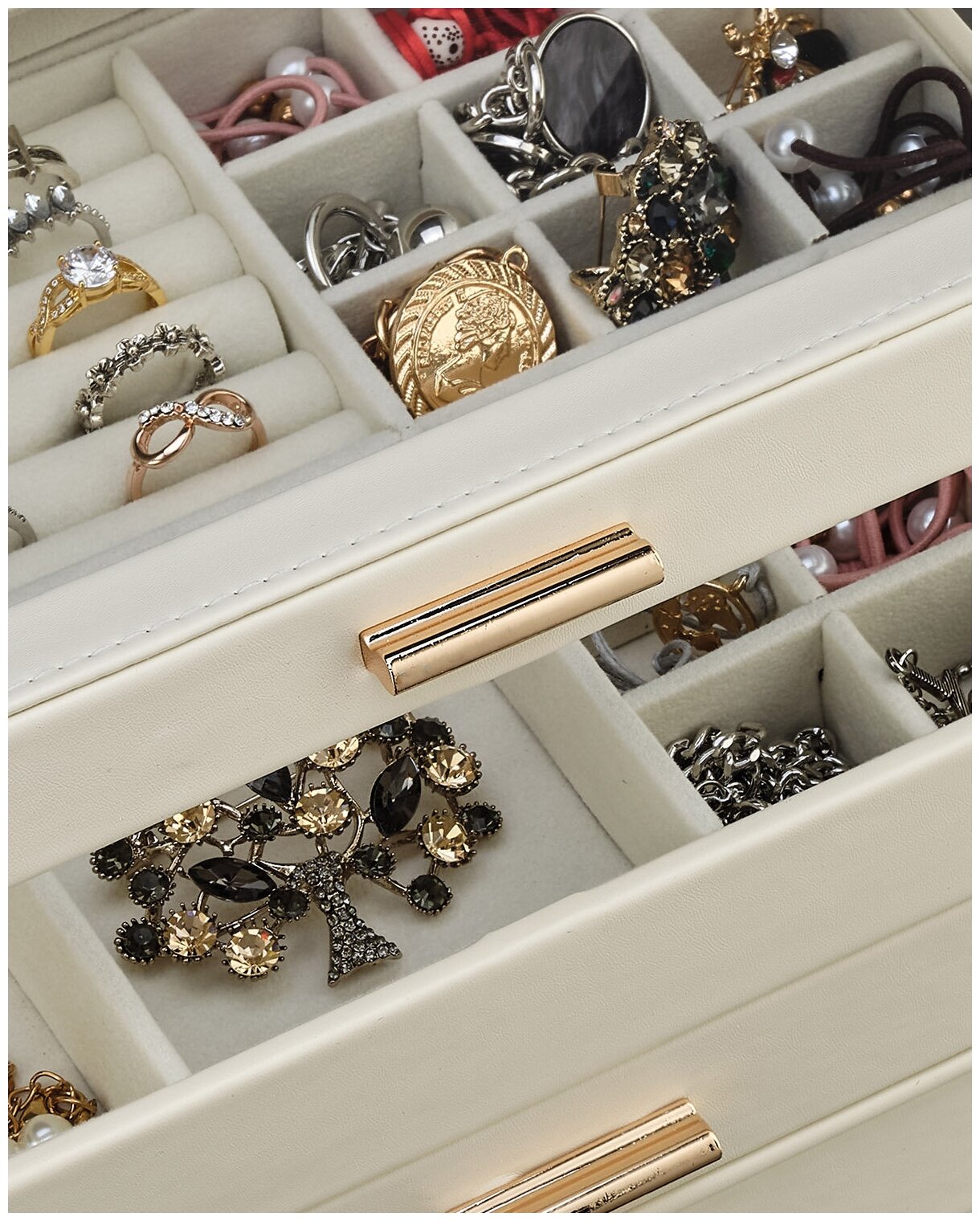 Шкатулка для украшений большая / Органайзер для украшений / Шкатулка для колец и бижутерии Beta White
