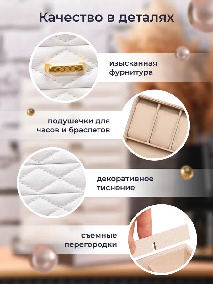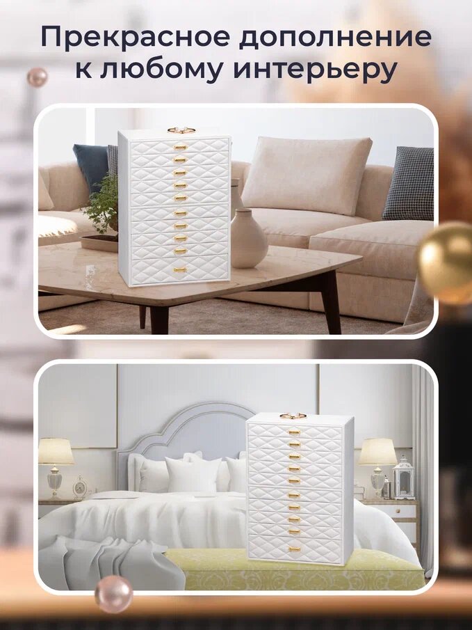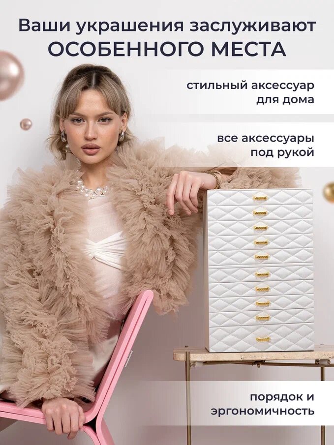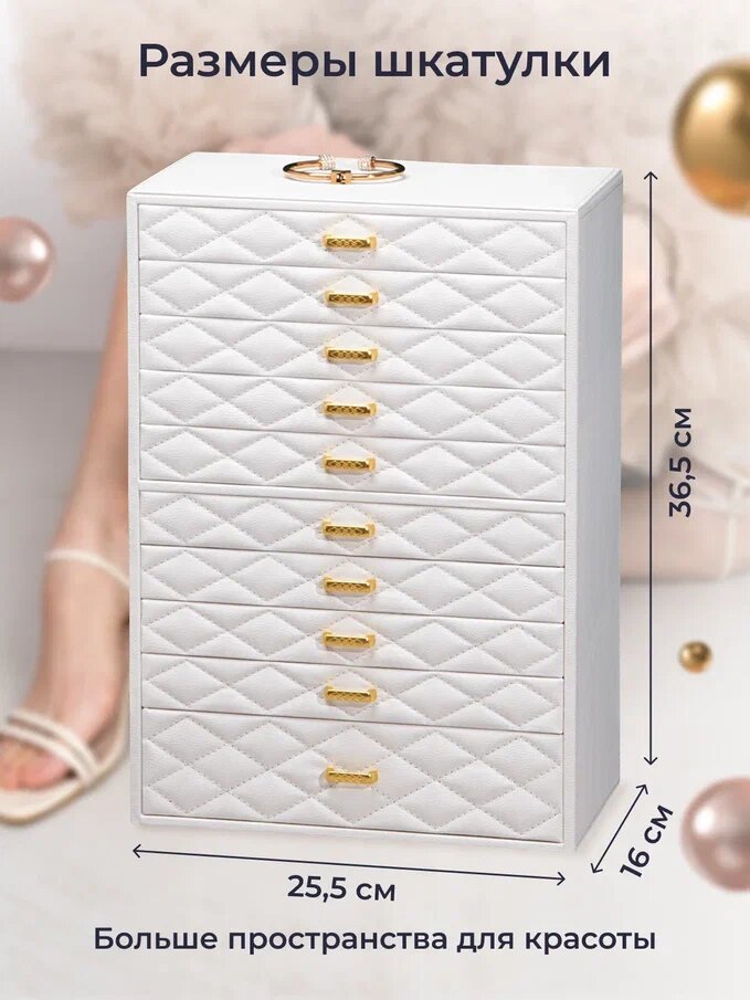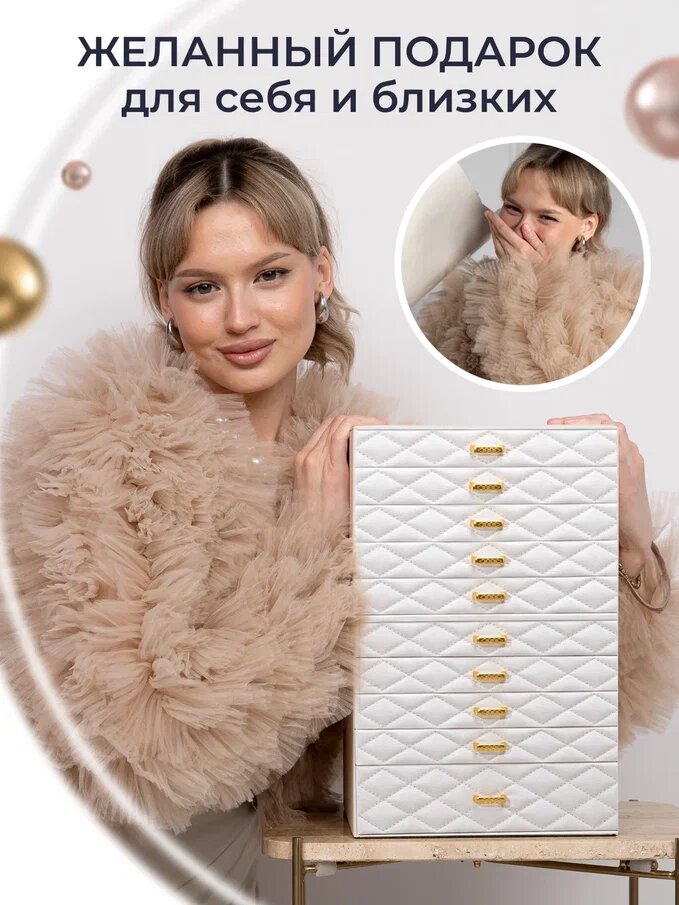 Премиум шкатулка для хранения украшений большая, многоярусная, кожаная, белый цвет интересное: