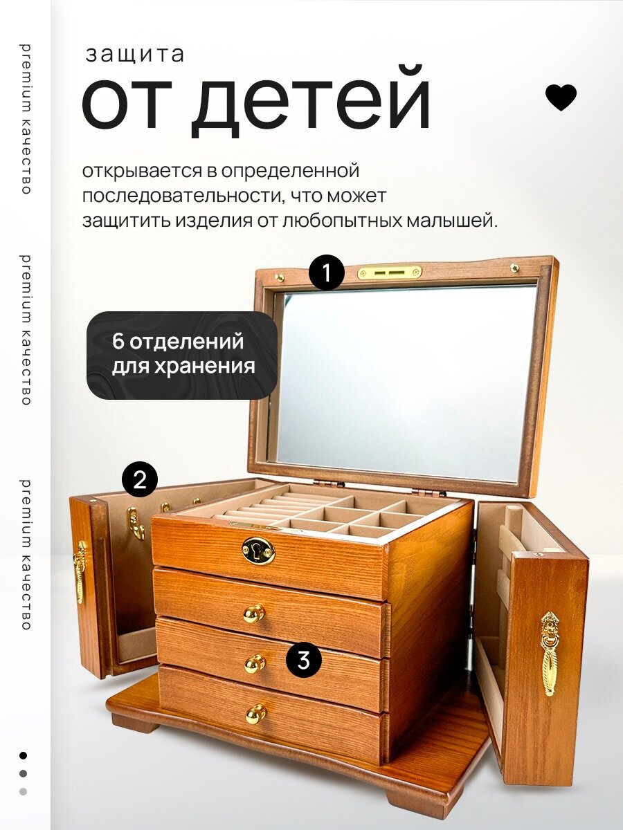 Ниже Вы можете прочитать отзывы на Деревянная шкатулка-сундук для украшений. Компактная с замком и зеркалом. 18 отделений Идеальный подарок, ознакомится с подробными характеристиками, посмотреть интересные обзоры и фотографии на Деревянная шкатулка-сундук для украшений. Компактная с замком и зеркалом. 18 отделений Идеальный подарок.