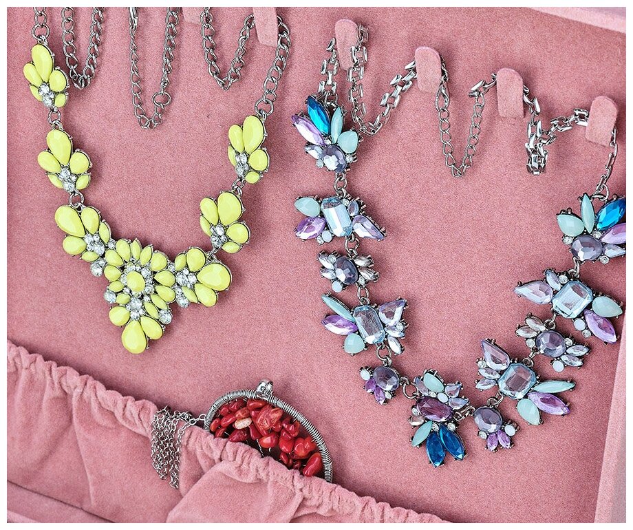 Шкатулка с отделениями под украшения для девочки / Органайзер для бижутерии / Коробка для хранения большая S2023-Pink интересное: