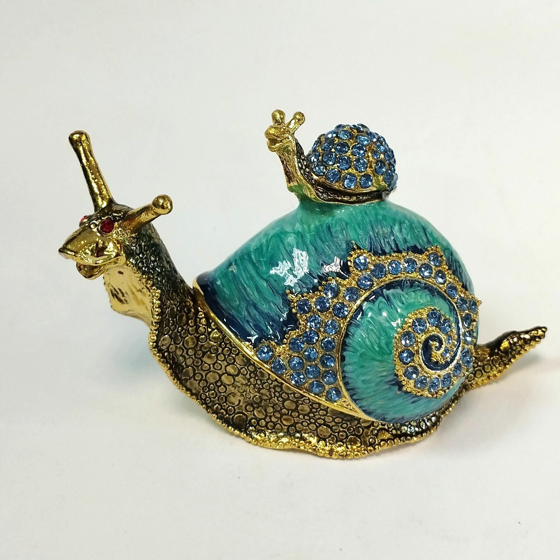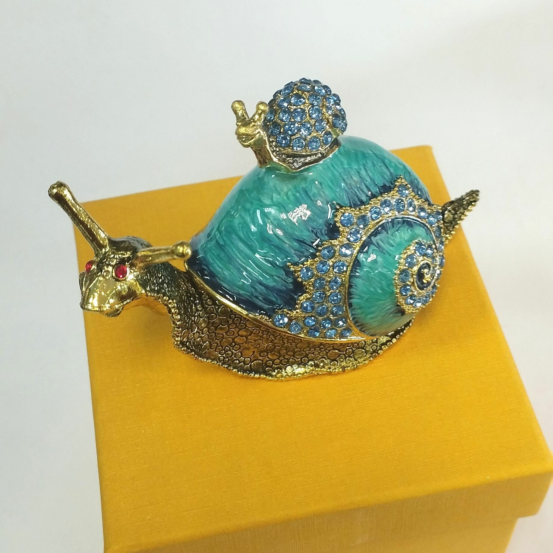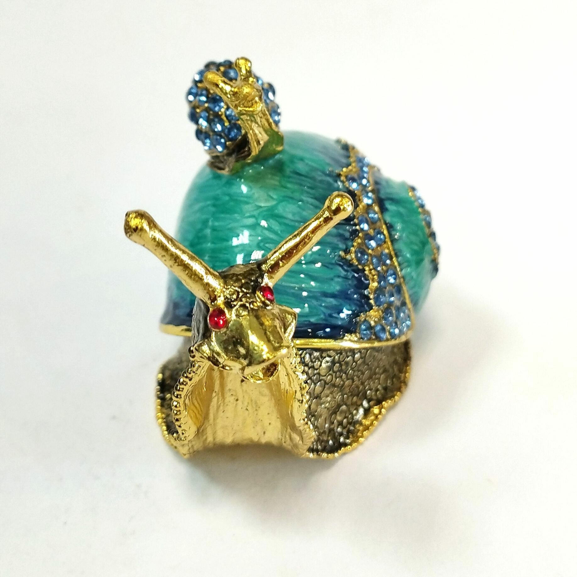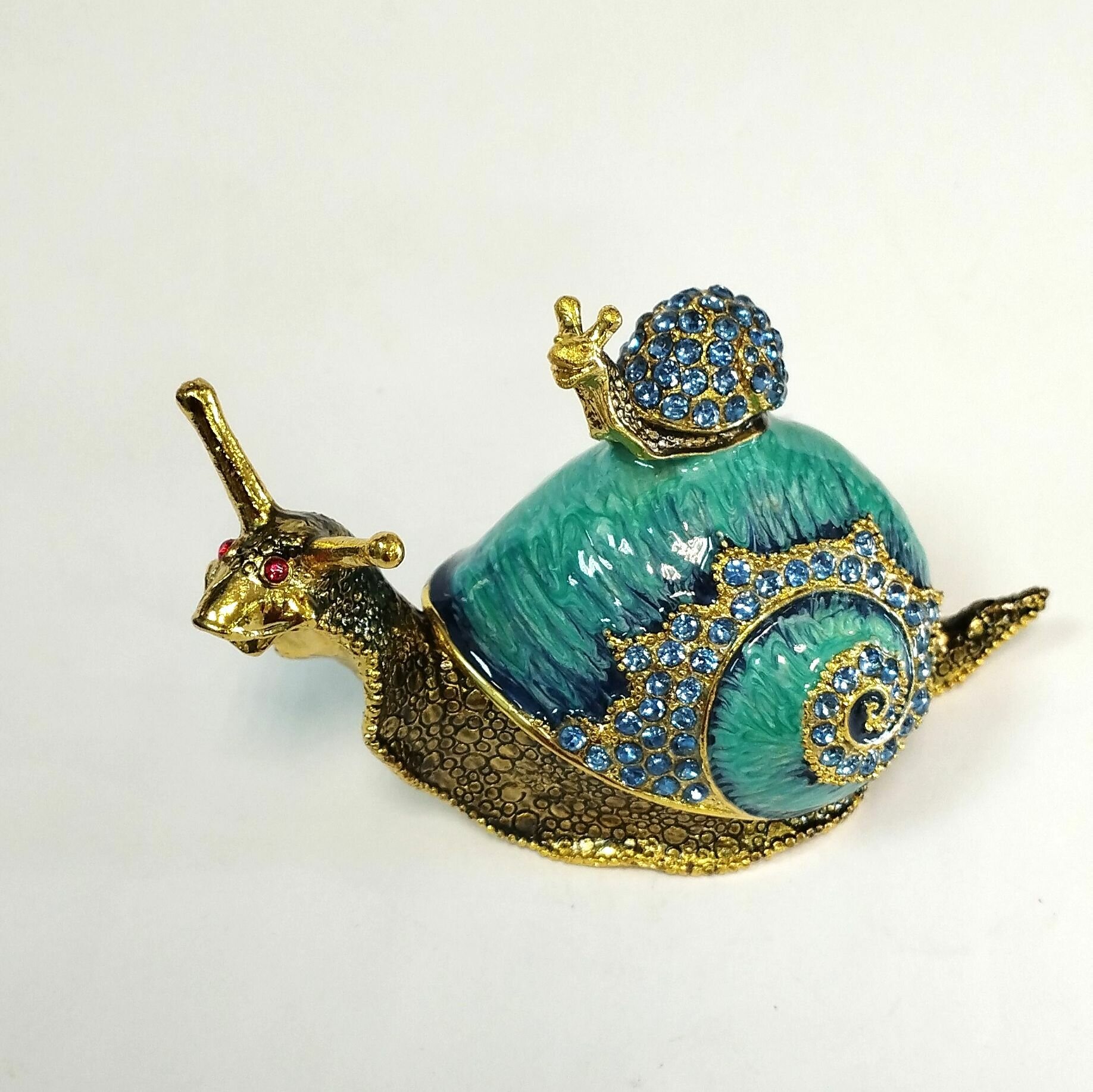 Шкатулка Улитка со стразами в стиле Фаберже, металл, фигурная, высота 5.2 см интересное:
