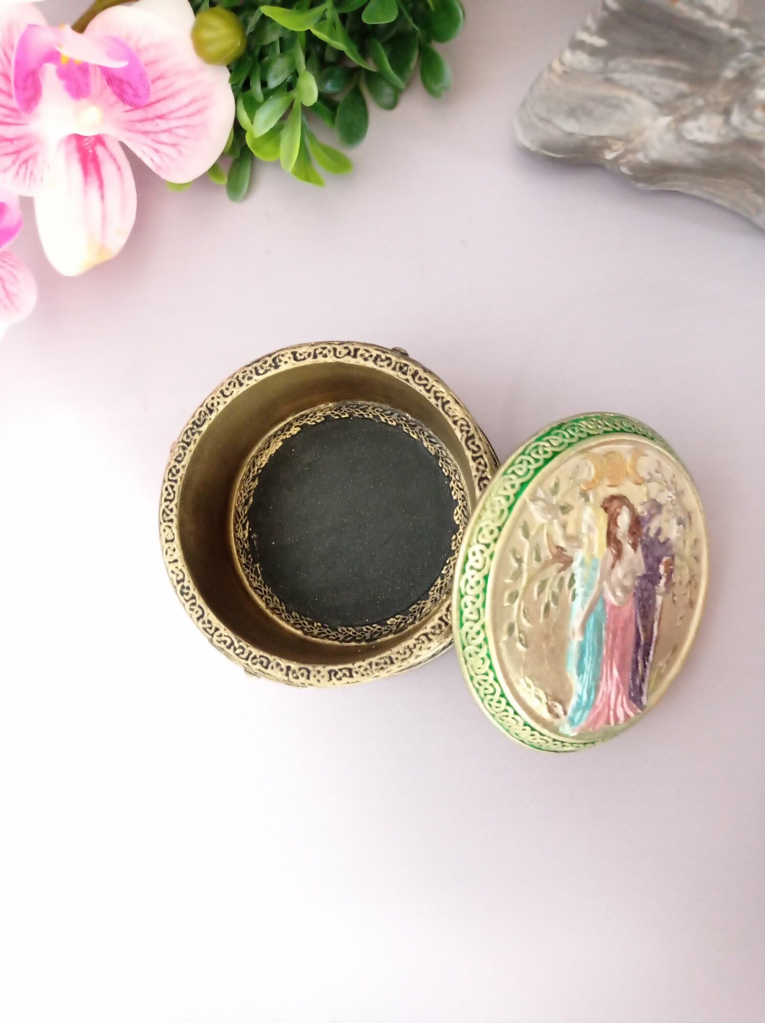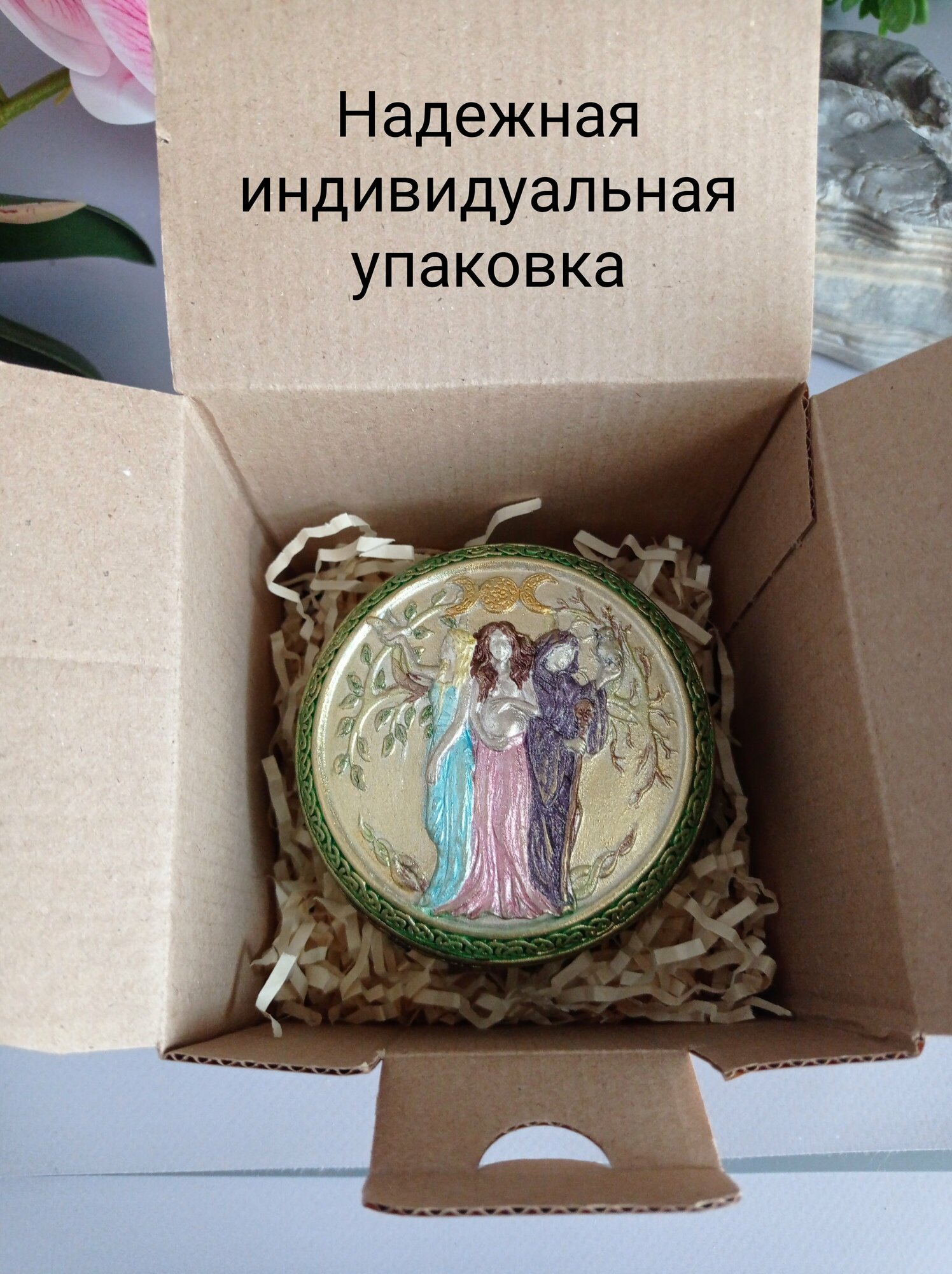 Шкатулка DekorAng "Триединая Богиня Луны" гипс, ручная работа, ручная роспись, для мелочей и украшений, зеленая интересное: