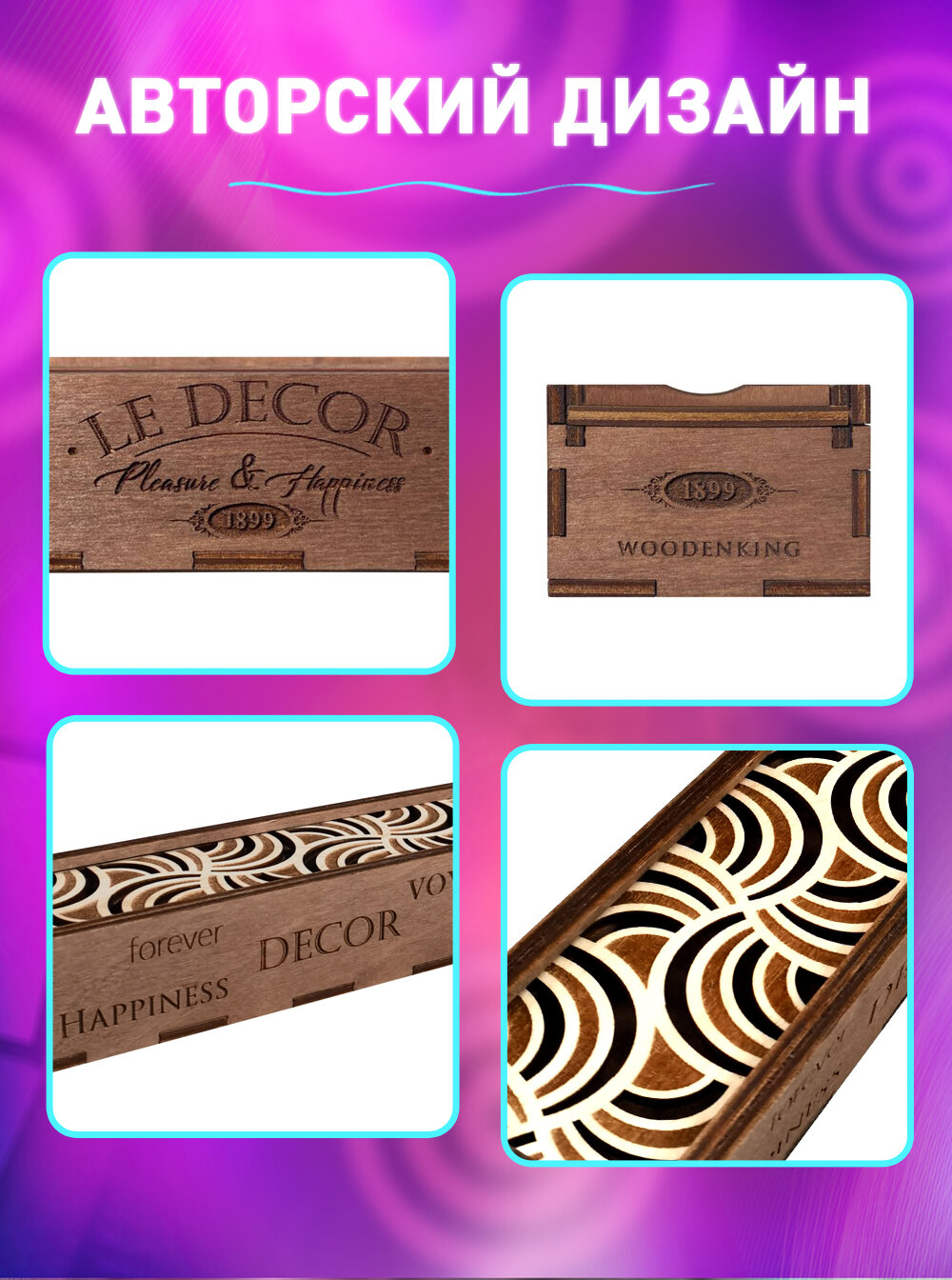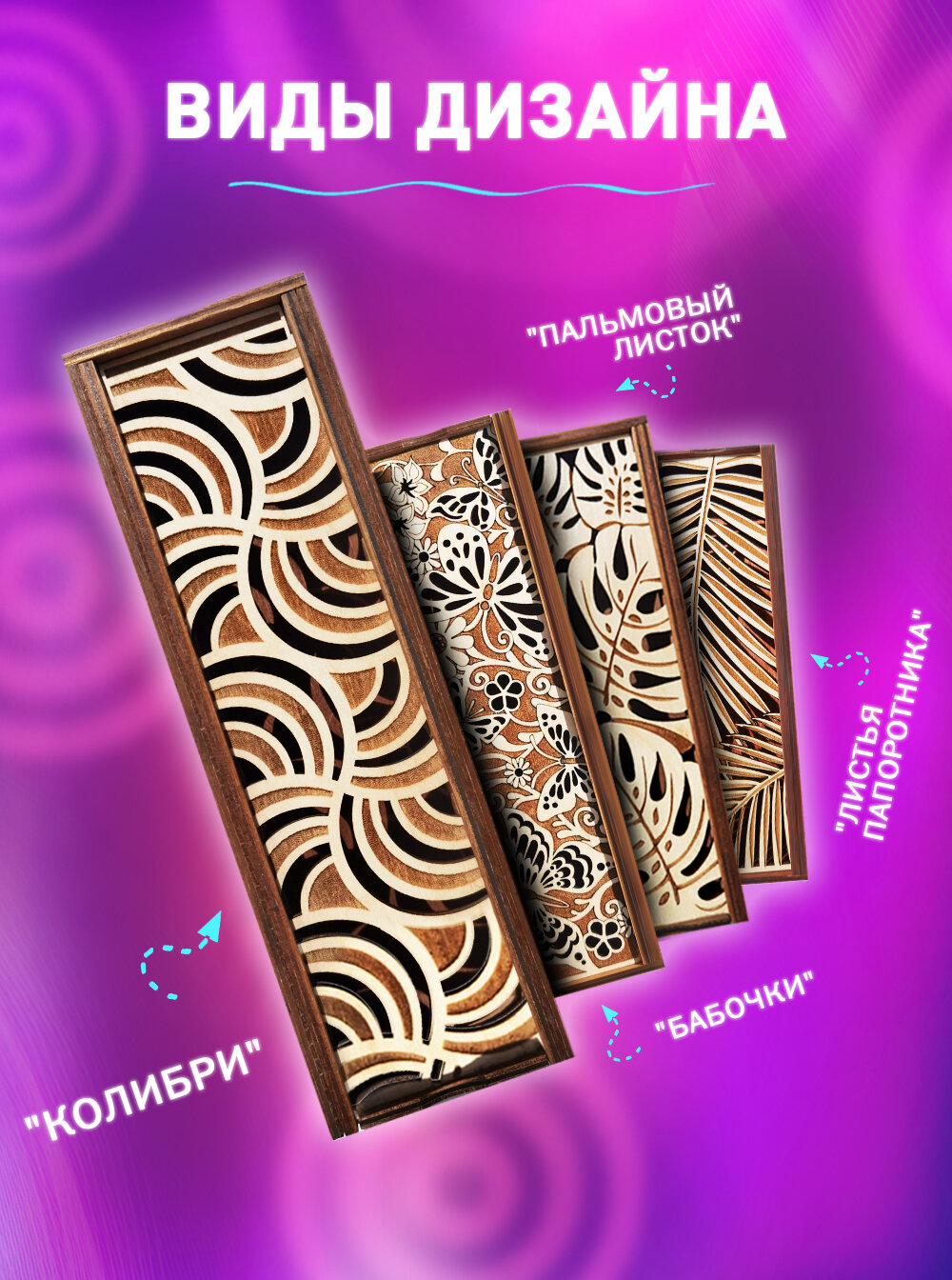 Пенал - шкатулка Woodenking из дерева для хранения канцелярии и бижутерии "Листья папоротника"