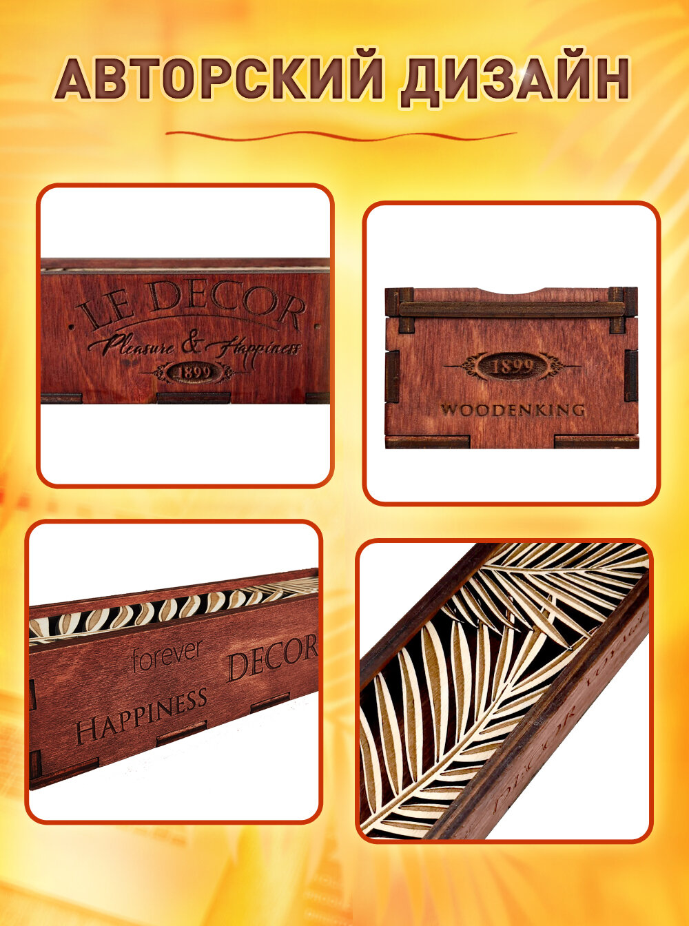 Пенал - шкатулка Woodenking из дерева для хранения канцелярии и бижутерии "Листья папоротника" интересное: