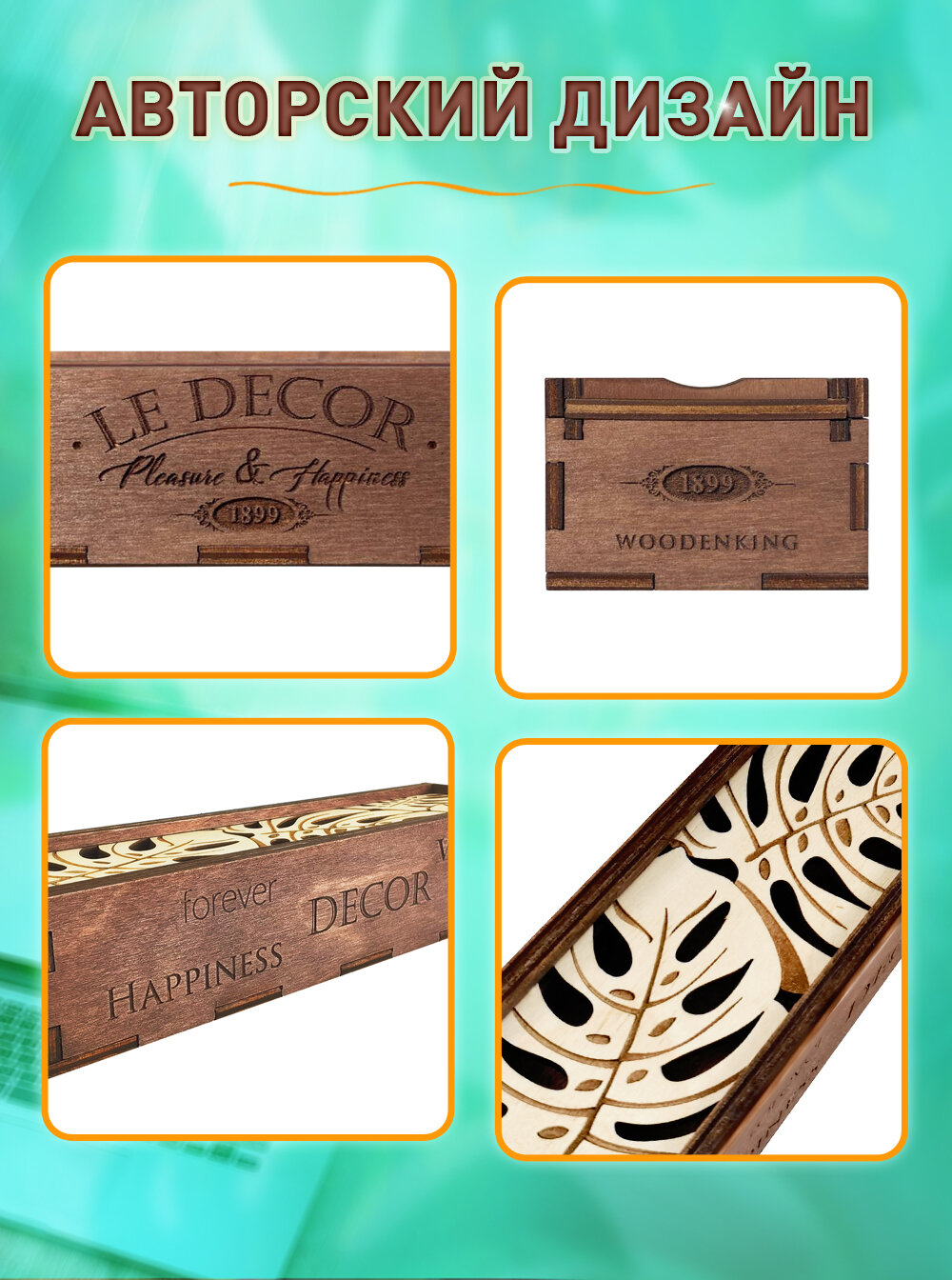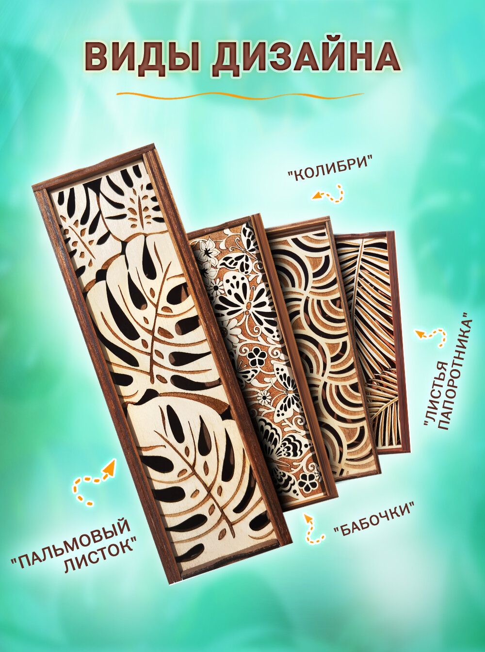 Пенал - шкатулка Woodenking из дерева для хранения бижутерии и канцелярии "Пальмовый листок" интересное: