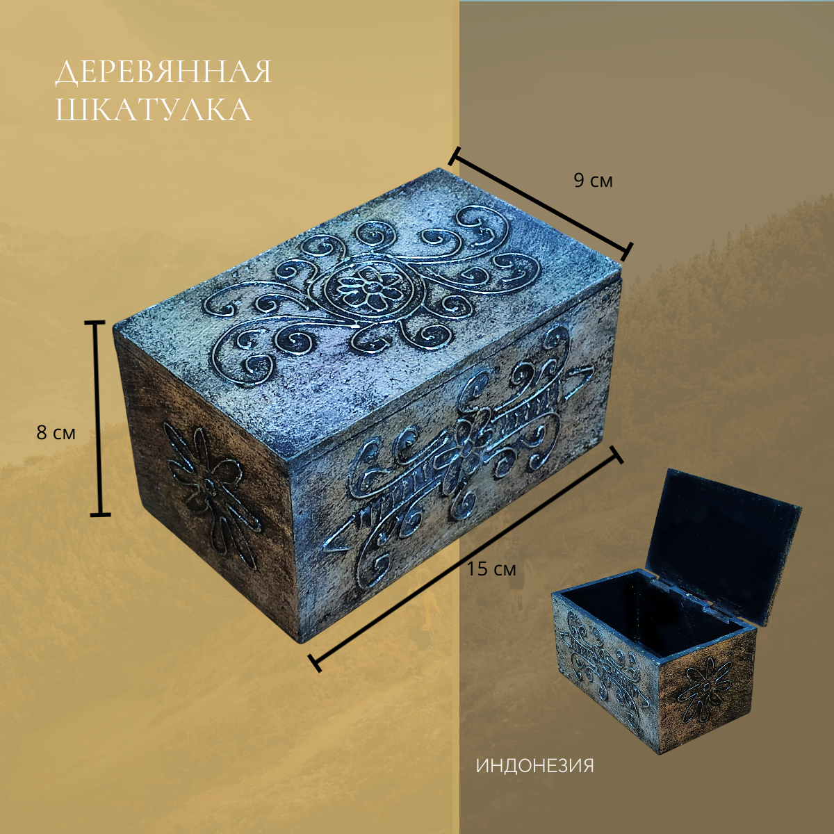 Шкатулка для приятных воспоминаний, ручная работа, Индонезия, цвет серебряный, размеры 8*9*15см интересное: