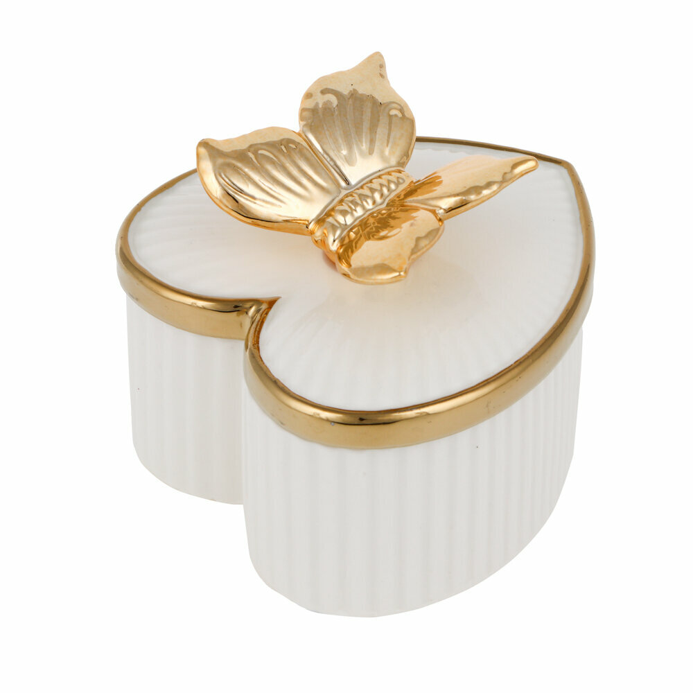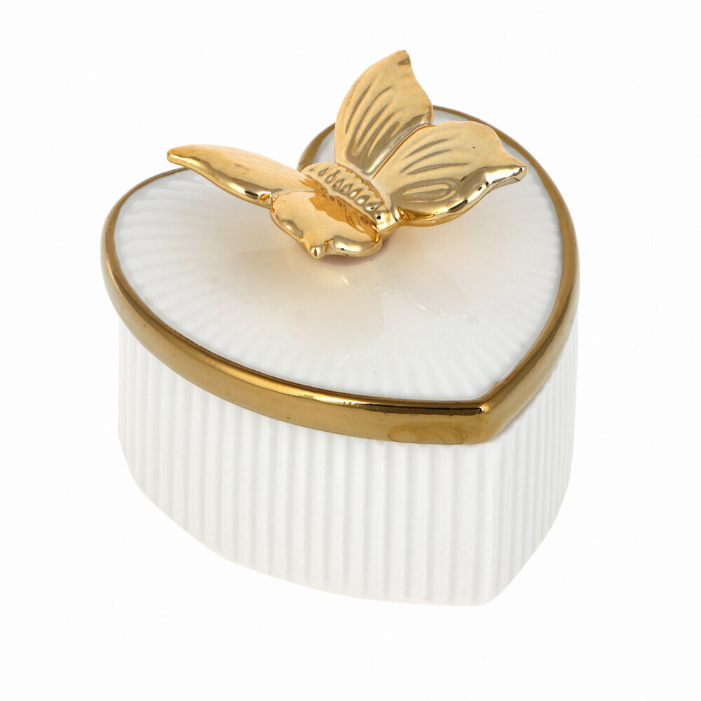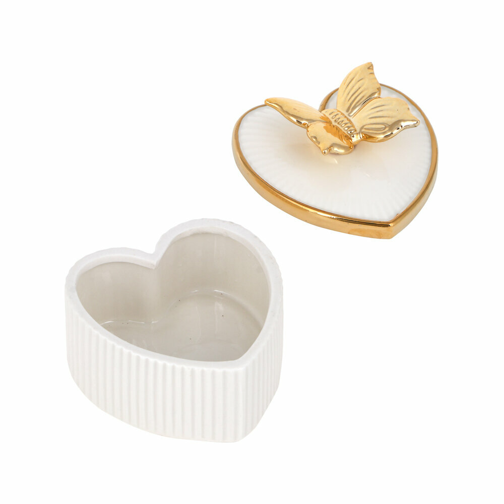 Купить Шкатулка для украшений в виде сердца 10х8,2 см, керамика, белая с золотой бабочкой