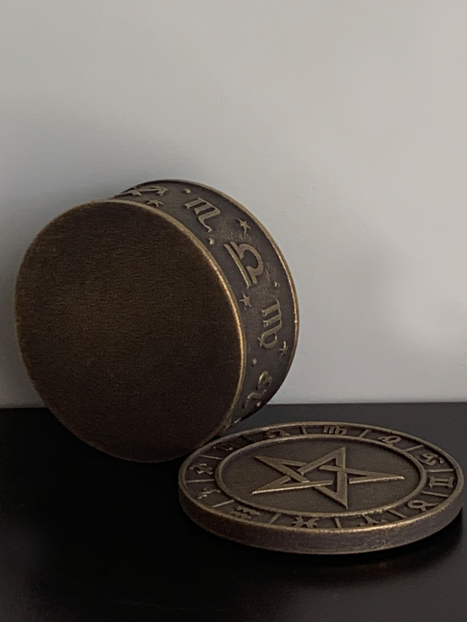 Шкатулка Lerukami "Пентакль", гипс, круглая, 4,8x8,8 см, цвет бронзовый/золотистый интересное: