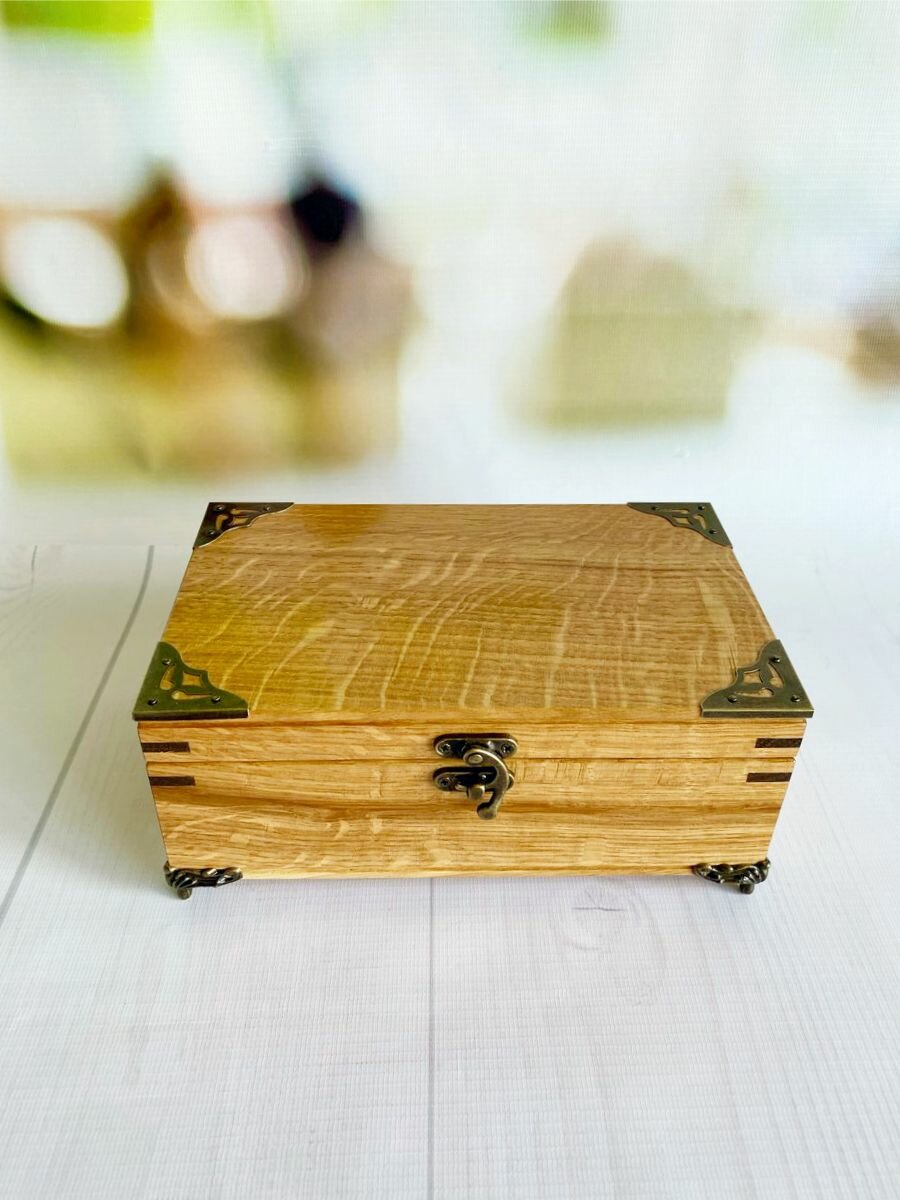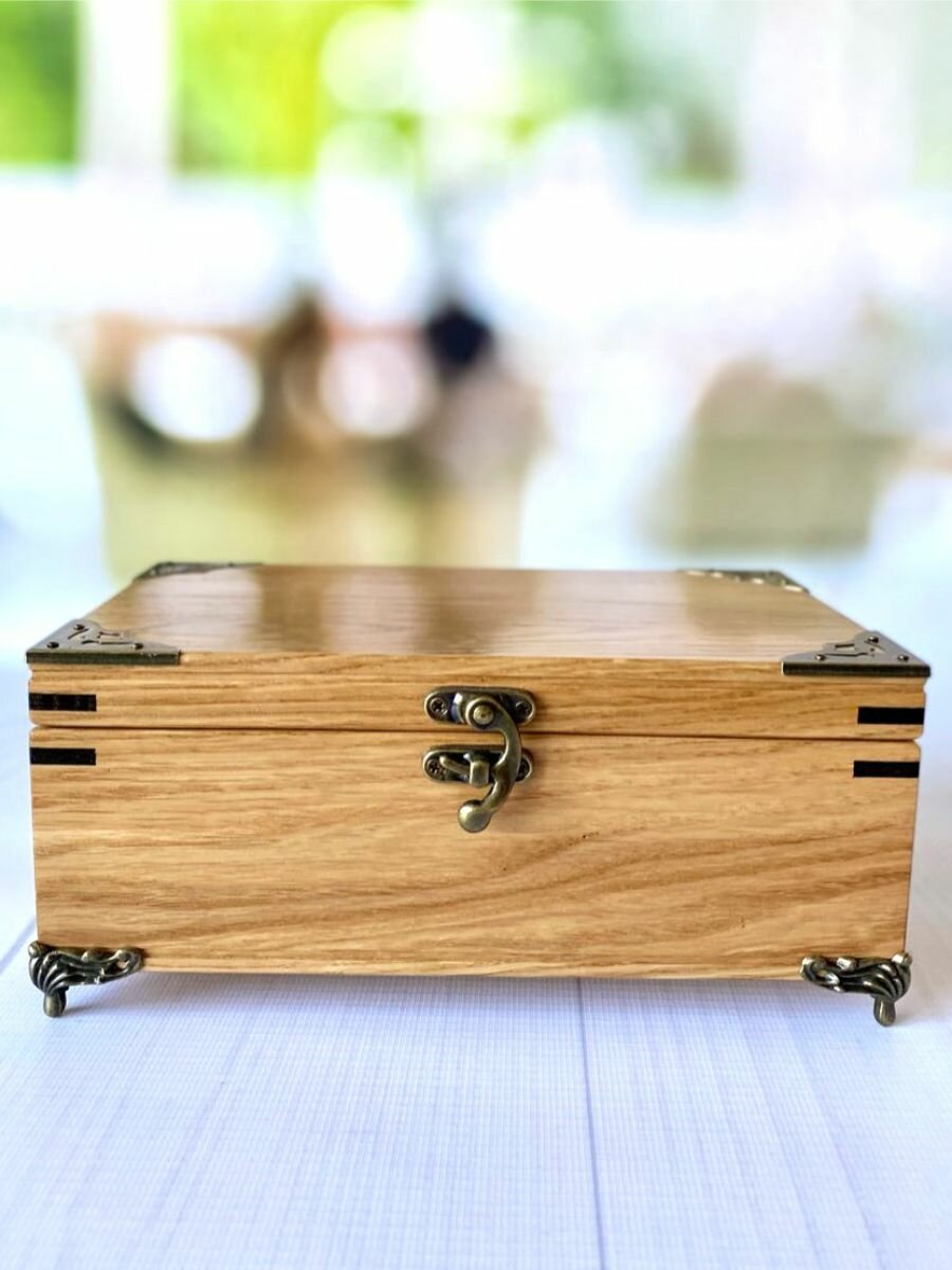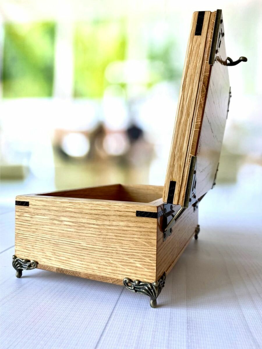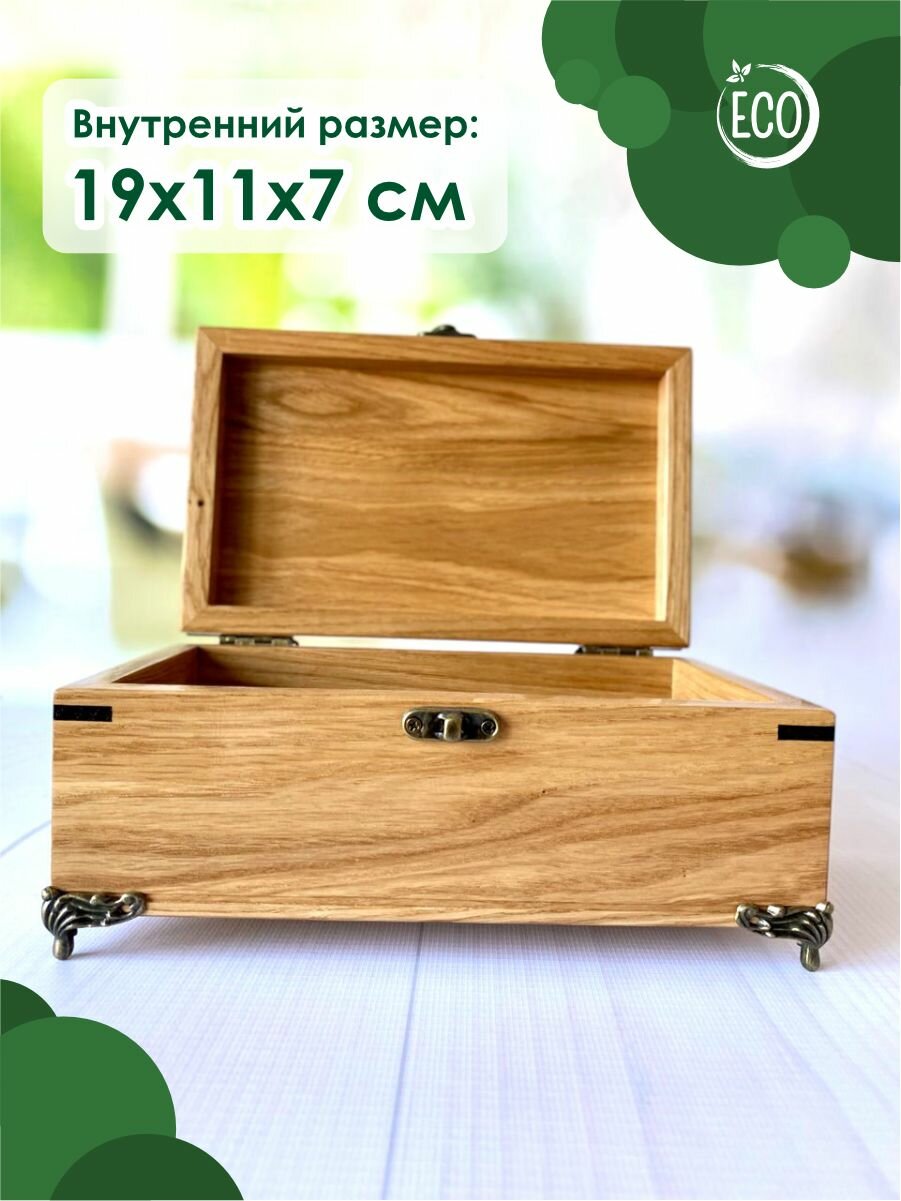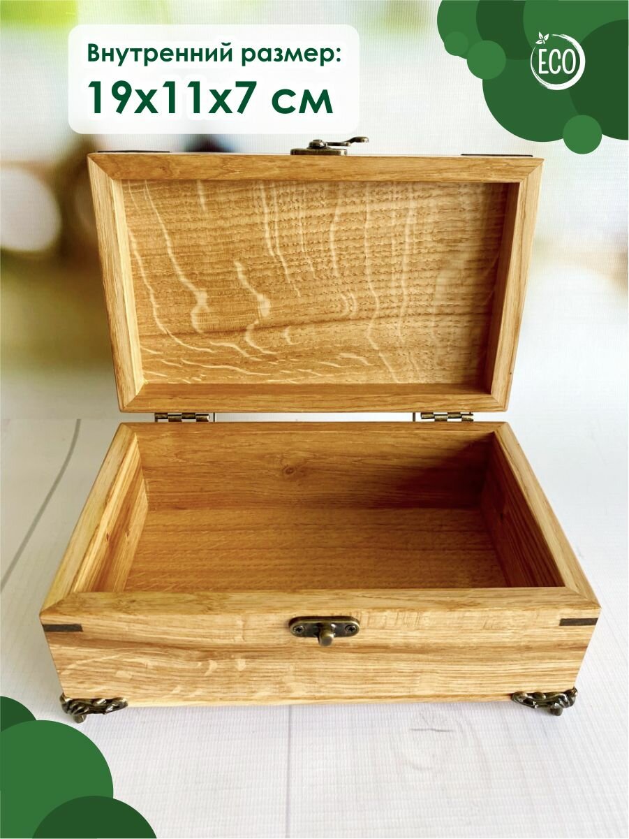 Шкатулка деревянная, из массива дуба с уголками и ножками 21х13 см, Лесная Сказка интересное: