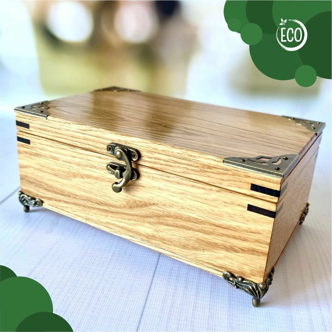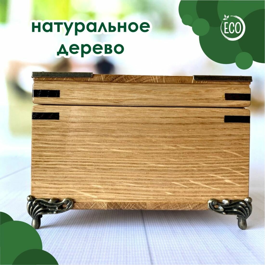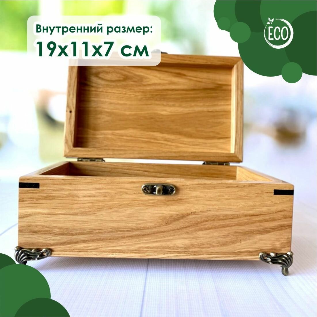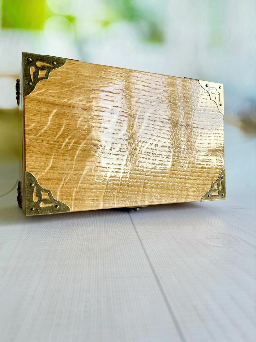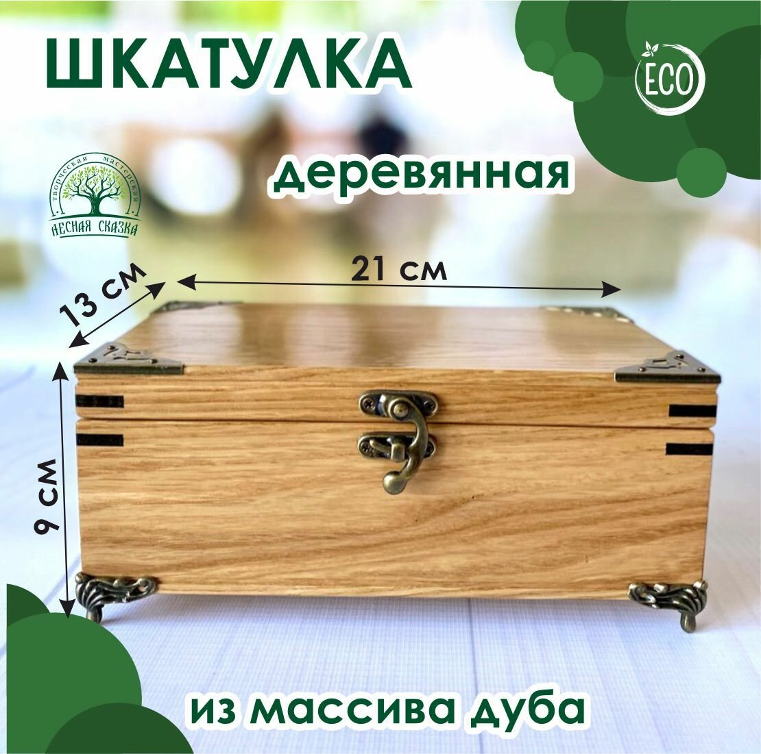 Шкатулка деревянная, из массива дуба с уголками и ножками 21х13 см, Лесная Сказка интересное: