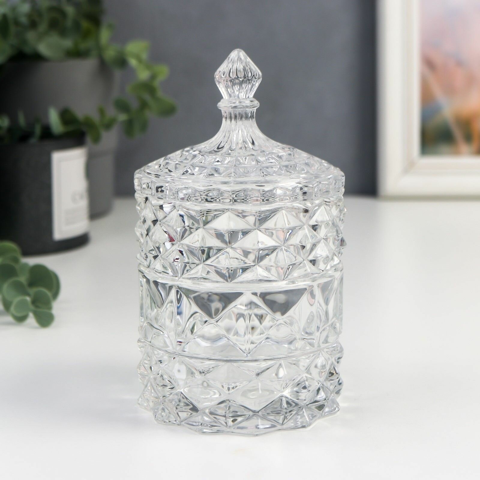 Купить Шкатулка стекло цилиндр Ромбики и купол прозрачный 16х8,5х8,5 см