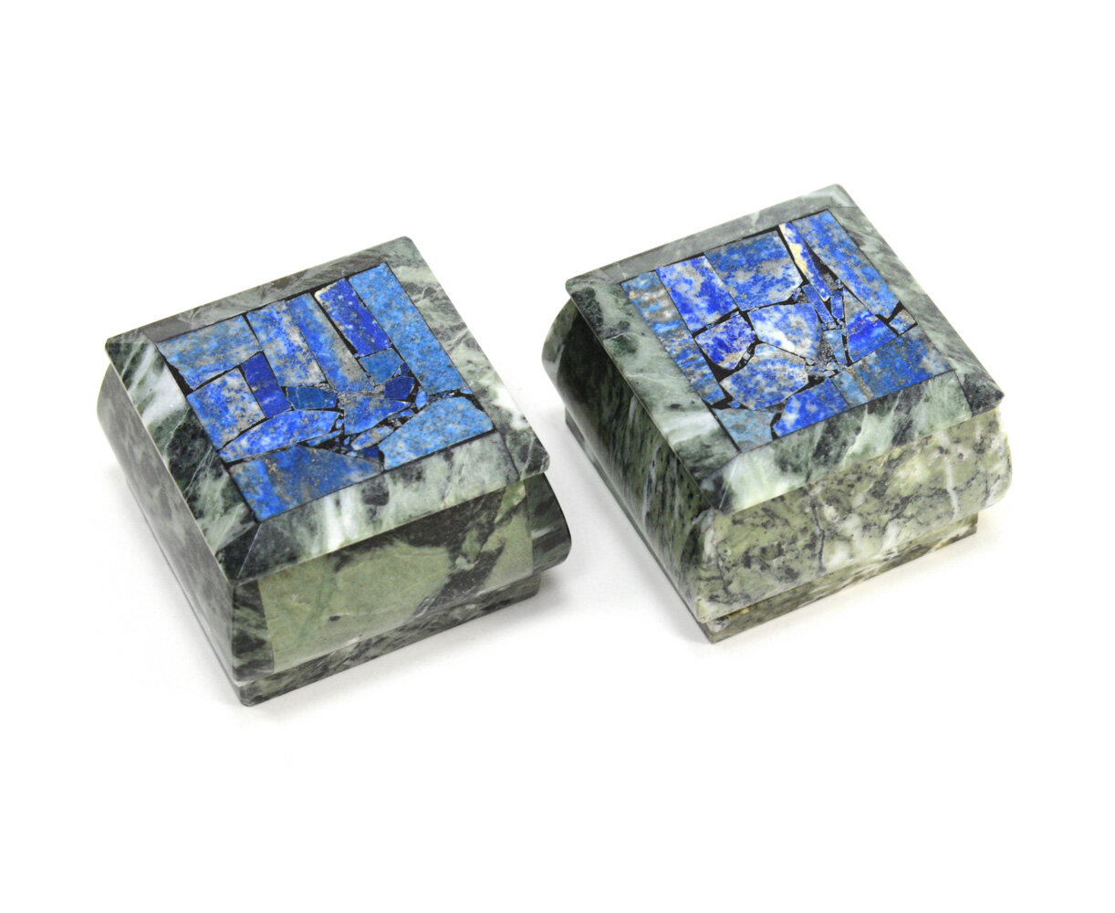 Купить Шкатулка из змеевика и лазурита 8,5x8,5x6 см