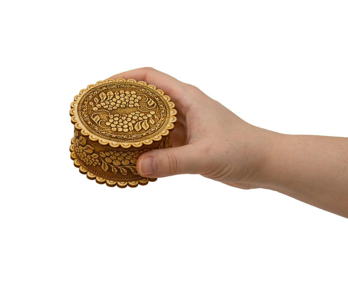 Шкатулка из бересты и дерева маленькая "Рябина" D8 H4 интересное: