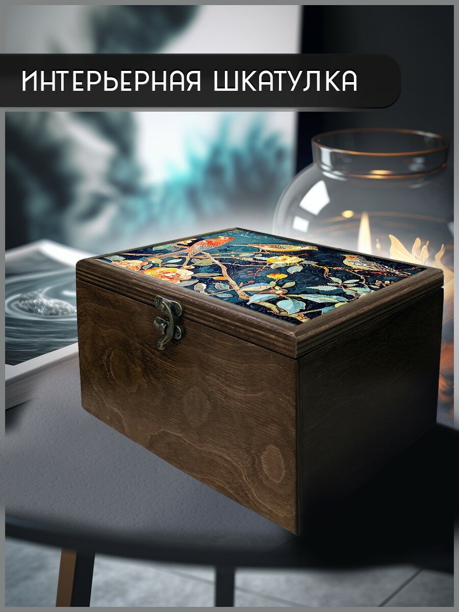 Шкатулка интерьерная для украшений универсальная 22x17x12 см эстетика Птицы в саду (растения, цветы, пионы, орнамент, атмосфера) - 2011 интересное: