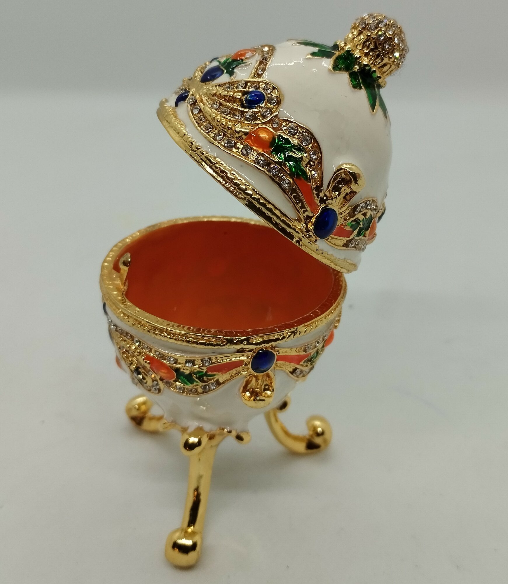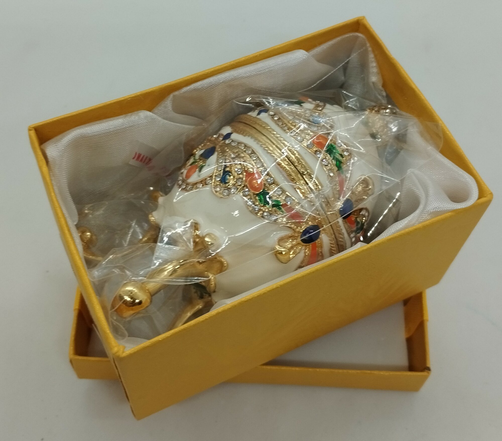 Яйцо Фаберже с орнаментом из разноцветных страз, белое. Арт-5063 интересное: