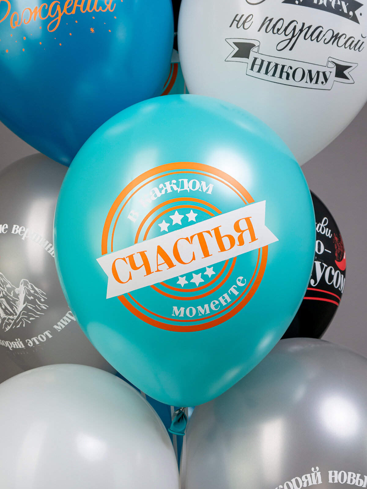 Купить Воздушные шары для мужчины на день рождения "Живи со вкусом" 30 см набор 10 штук 5 дизайнов