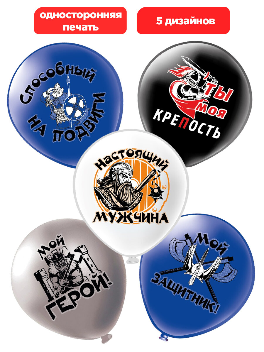 Купить Шарики воздушные для мужчины "Мой защитник" 30 см набор 10 штук 5 дизайнов