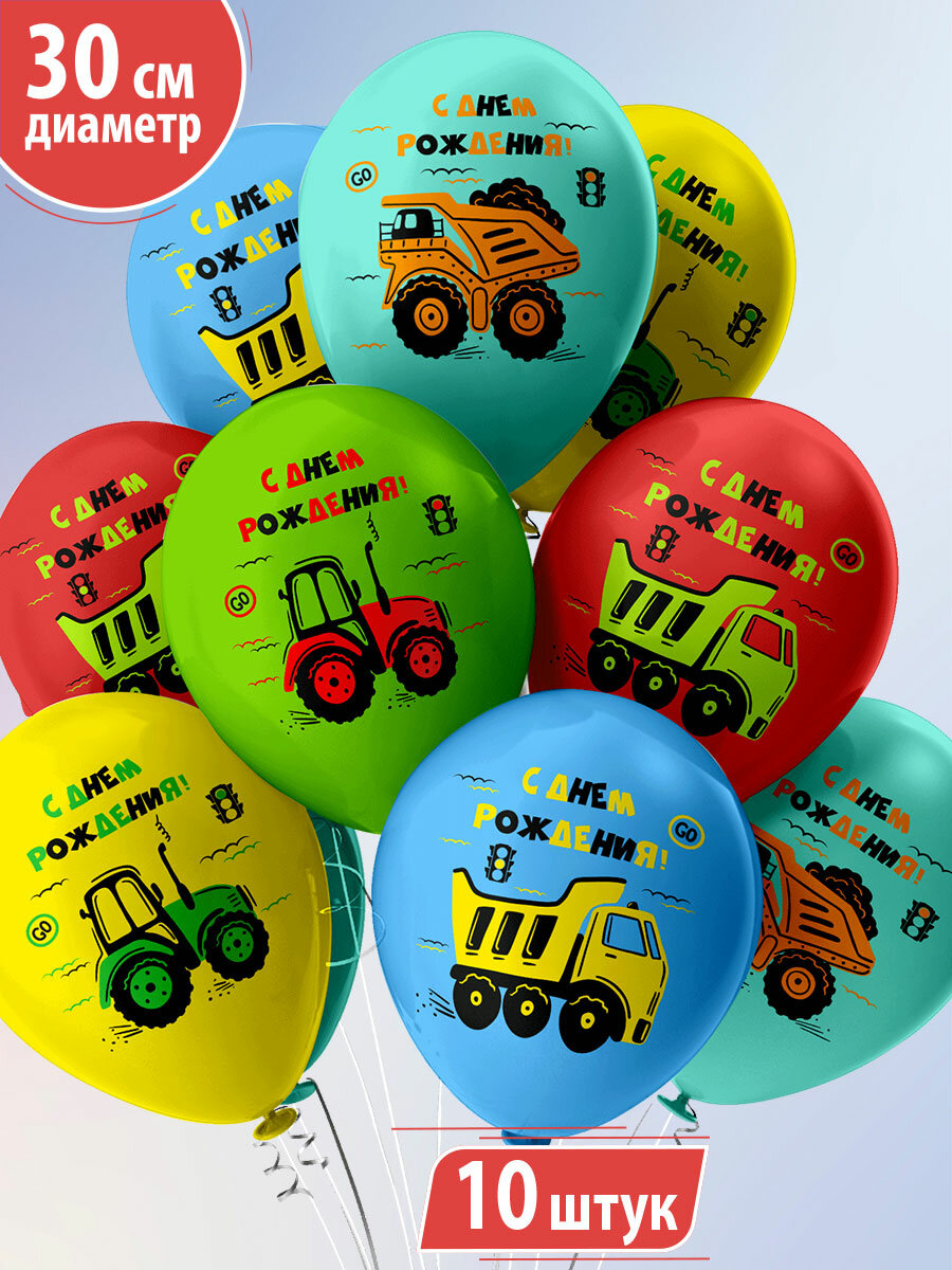 Купить Шарики воздушные для мальчика, сына на праздник С Днем Рождения! "Спецтехника" 10 шт