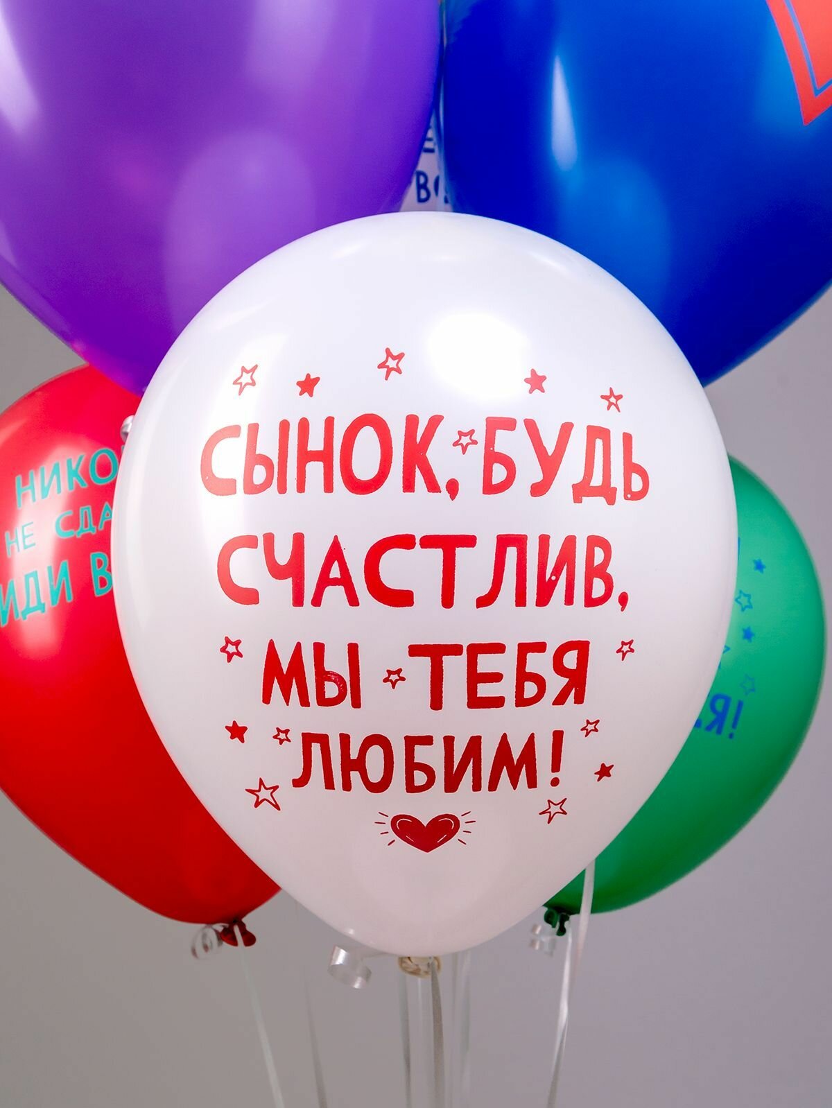 Купить Шарики воздушные для сына, мальчика "С днем рождения, сынок!" 30 см набор 10 штук