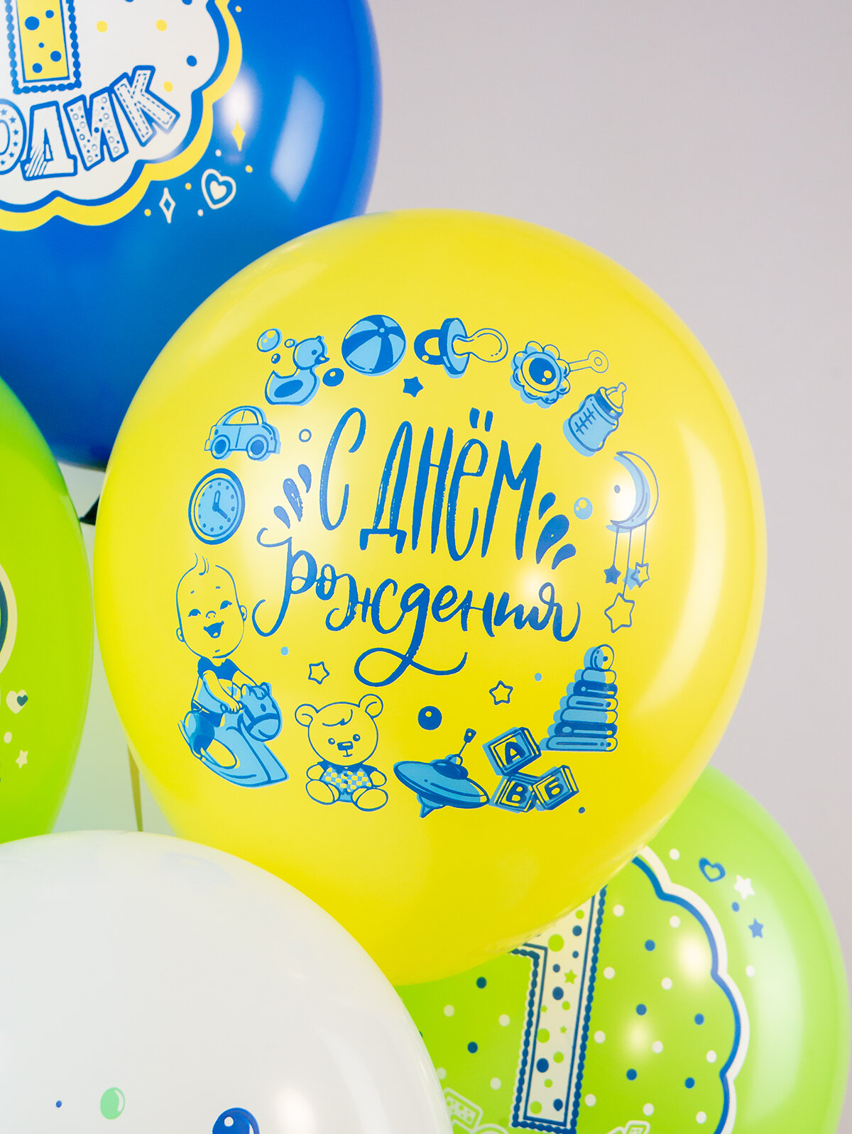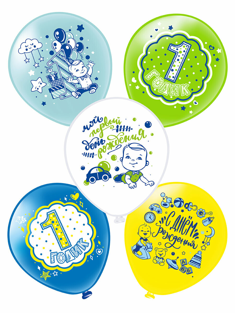 Купить Шарики воздушные для мальчика, сына на праздник С Днем Рождения "1 годик!" 10 шт