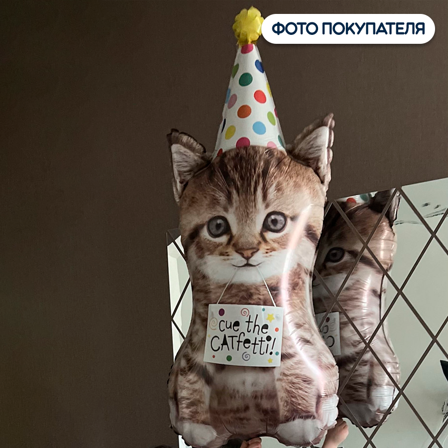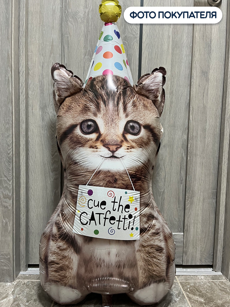 Воздушный шар фольгированный Betallic фигурный, Котенок в колпаке, Cue the Catfetti, 104 см интересное: