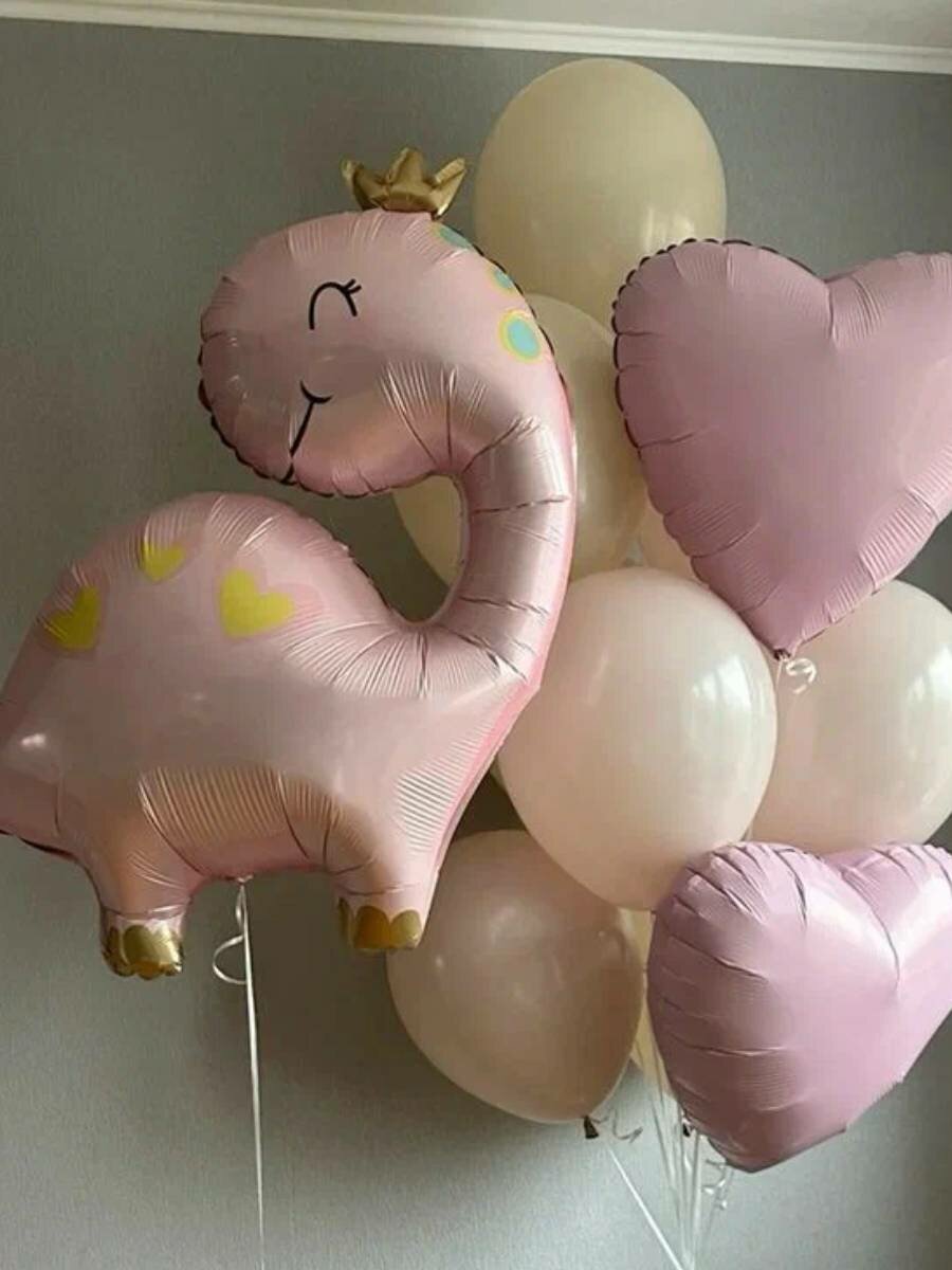 Набор воздушных шаров МосШар, Динозаврик розовый в короне, 10 шт. интересное: